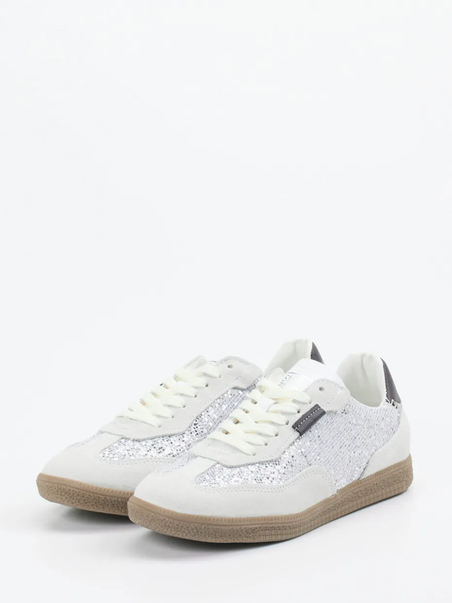 Dieser modische Damen-Sneaker kombiniert samtiges Veloursleder mit silberfarbenem Glitzereinsatz – ein stilistischer Mix aus Retro-Chic und Y2K-Trend. Perfekt für expressive Streetstyle-Looks.
