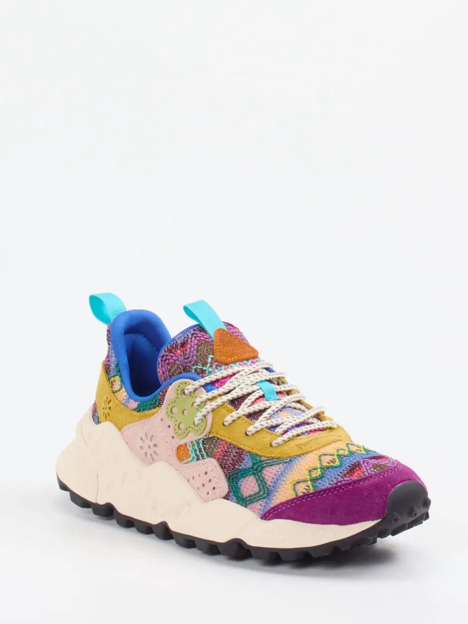 Funktion trifft Farbvielfalt.Flower Mountain präsentiert mit diesem Sneaker ein Statement-Piece für urbane Abenteuer und Wanderwege zugleich. Lebendige Farben, ein voluminöser Schnitt und die robuste Gummisohle mit Trail-Profil machen diesen Chunky Sneaker zum idealen Begleiter für Freizeit und Naturerkundung. Das Obermaterial aus Textil und samtig angeschliffenem Veloursleder zeigt ein kontrastreiches Ethno-Muster, ergänzt durch farbige Zuglaschen und perforierte Overlays. Die herausnehmbare Innensohle aus natürlichem Kork unterstreicht den nachhaltigen Anspruch. Kombinierbar mit Outdoorjacken im Colorblocking – ideal für expressive Streetwear-Looks. Charaktervoller Sneaker mit Komfort-Plus und Outdoor-Flair der Marke Flower Mountain.