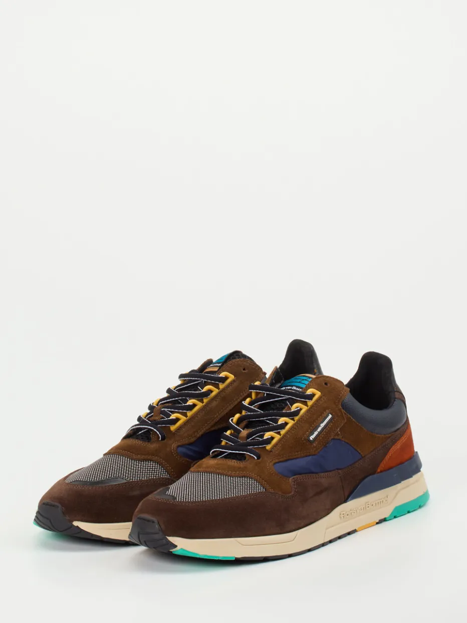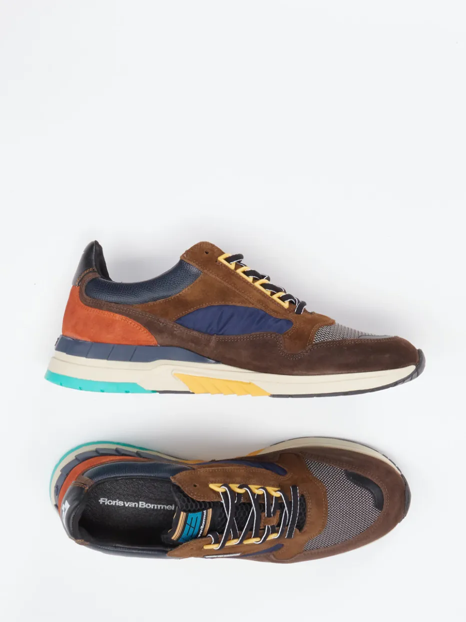 Farbstarke Dynamik trifft klassisches Sneaker-Design.Floris van Bommel zeigt mit diesem Sneaker für Herren, wie stilvolle Lässigkeit und hochwertige Verarbeitung Hand in Hand gehen. Ideal für urbane Alltagslooks überzeugt das Modell mit einem Materialmix aus Veloursleder, samtig angeschliffen, robustem Mesh und Nylon. Der kräftige Braunton erhält durch rostorange und petrolgrüne Details ein kontrastreiches Farbspiel. Die klassisch-sportliche Silhouette wird ergänzt durch farblich abgesetzte Schnürösen, Sticklogo und eine mehrfarbige Gummisohle mit Profil. Der Stil ist beeinflusst von Retro-Running-Elementen und passt ideal zu modernen Color-Blocking-Trends. Perfekt kombinierbar mit Cargohose oder Casual-Rucksack. Ein Statement-Sneaker mit bequemer Innensohle und einzigartigem Markencharakter.