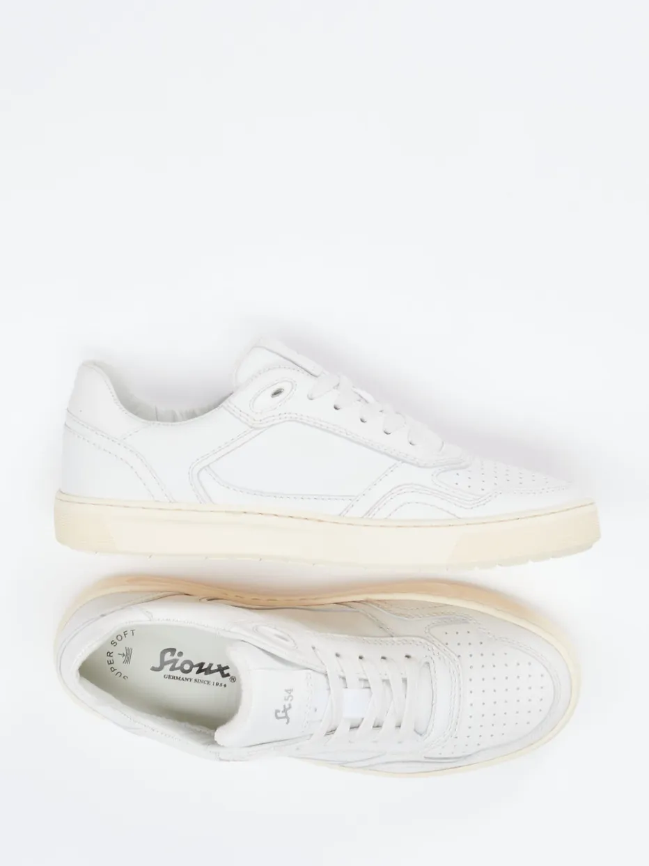 Dieser leichte, attraktive Sneaker in der Form Tedroso-DA-700 kommt aus dem Hause Sioux und überzeugt mit seinem cleanen Look. Die besondere Flexibilität und weiche Verarbeitung des weißen Kalbleders verspricht absolute Bequemlichkeit. Abgerundet wird der hohe Tragekomfort mit der angenehmen Leder-/ Frotteefütterung und dem soft gepolsterten Wechselfußbett. Der Sneaker hat die Weite G.