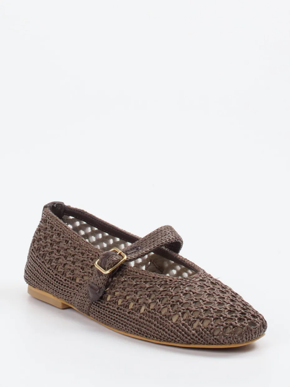 Feine Struktur für leichte Sommertage.Andrea Sabatini präsentiert luftige Damen-Spangenpumps in klassischer Mary-Jane-Silhouette. Ideal für Freizeit und Urlaub bieten die flach zulaufenden Ballerinas mit 1 cm Absatz angenehmen Tragekomfort bei sommerlicher Leichtigkeit. Gefertigt aus braunem Flechtleder mit matter Oberfläche, unterstreicht die goldfarbene Schnalle den Retro-Charme. Die detaillierte Webstruktur verleiht dem Design handwerklichen Ausdruck und folgt dem „Natural Textures“-Trend der Saison. Für mehr Flexibilität sorgt eine dünne, profilierte Gummisohle, die ein leichtes Barfußgefühl erzeugt. Stylingtipp: perfekt zu Leinenkleidern und Strohtaschen. Sommerlicher Chic mit natürlichem Komfort – typisch Andrea Sabatini.