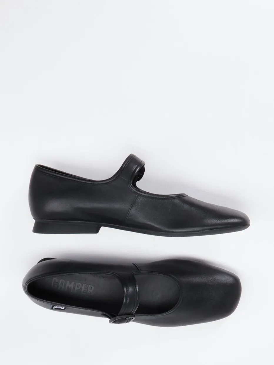 Retro-Chic für moderne Klassiker.Camper präsentiert einen Damen-Spangenpumps im klassischen Mary-Jane-Stil. Für all jene, die einen schlichten, aber stilvollen Schuh für Büro und Freizeit suchen, überzeugt dieses Modell mit feinnarbigem Kalbleder, samtig-matter Oberfläche und einer klaren, flachen Silhouette. Der verstellbare Riemen mit toniger Schnalle sorgt für sicheren Sitz, während die leicht eckige Zehenpartie und die strukturierte Gummisohle modische Akzente setzen. Inspiriert vom „Balletcore“-Trend, ergänzt er minimalistische und feminine Looks gleichermaßen. Ideal zu cropped Pants, Röcken oder fließenden Stoffen. Ein femininer Klassiker mit dezenter Retro-Note – kompromisslos bequem und vielseitig kombinierbar.