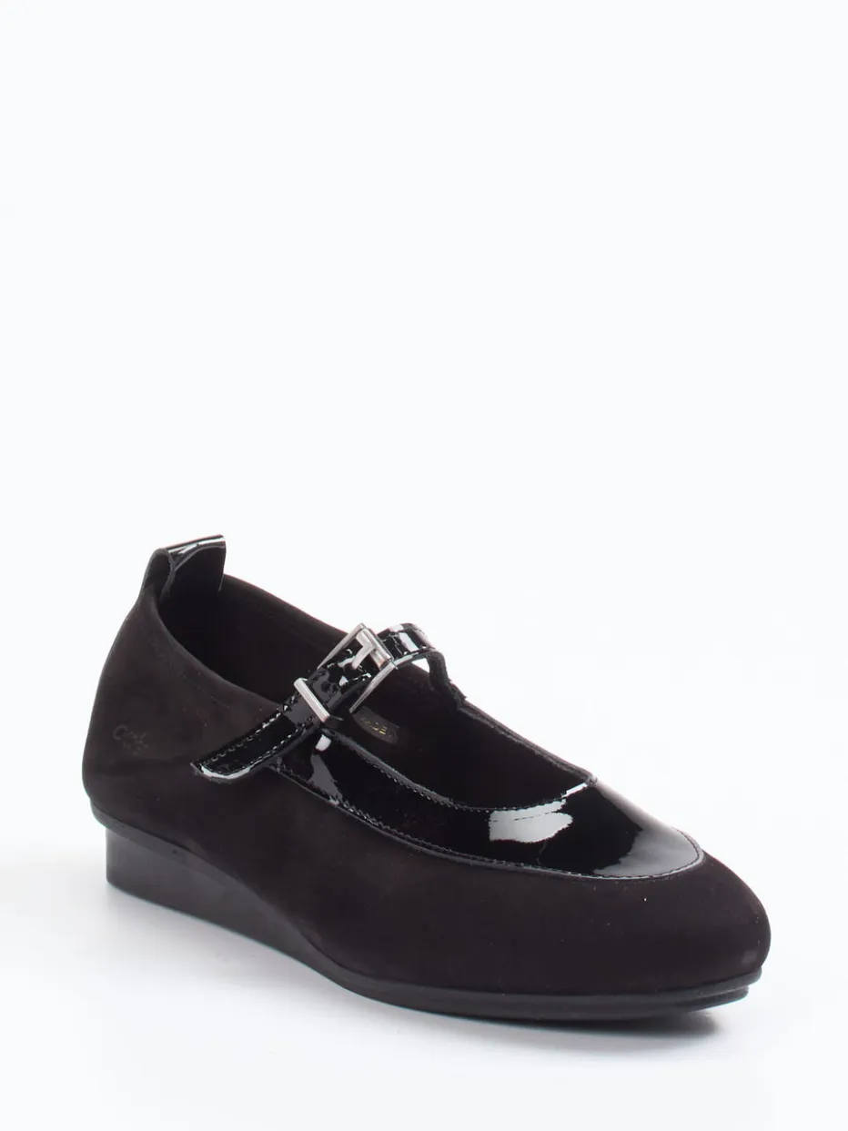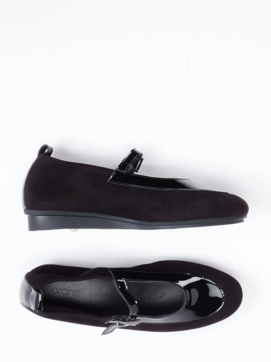 Dieser Mary Jane von Arche verbindet glänzendes Lackleder mit samtigem Nubuk – perfekt für stilsichere City- und Office-Looks.