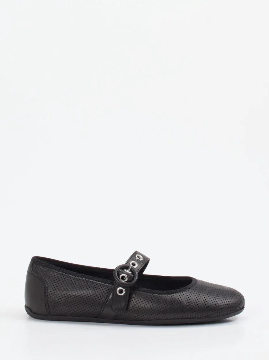 Luftig & lässig neu interpretiert.Candice Cooper präsentiert mit diesem Damen-Spangenpumps einen stilvollen Begleiter für entspannte Alltagsmomente. Das Modell aus geschmeidigem Lammleder zeigt sich in tiefem Schwarz und überzeugt mit perforierter Oberfläche und silberfarbenen Ösendetails. Die flache, runde Silhouette und der individuell verstellbare Riemen sorgen gemeinsam mit der weichen Kalbleder-Innenausstattung für ein komfortables Tragegefühl. Die geprägte Gummisohle unterstützt die sportiv-elegante Anmutung, während die luftige Verarbeitung dem Mary-Jane-Trend der Saison folgt. Ideal kombinierbar mit Leinen oder Strick für ein lässiges Styling. Candice Cooper steht hier für zeitlose Eleganz mit funktionalem Anspruch.