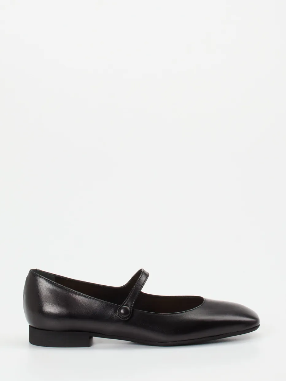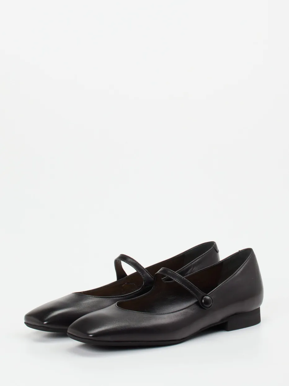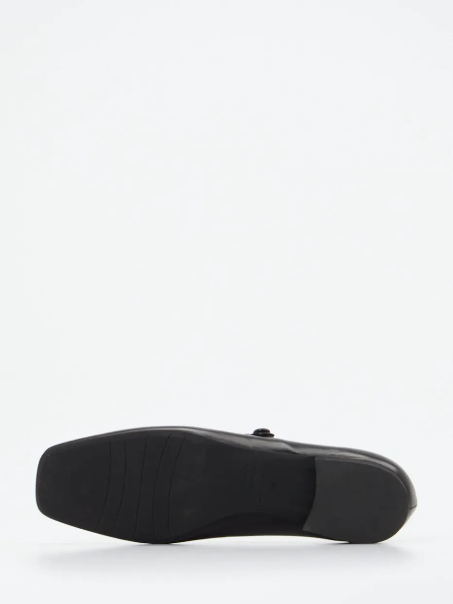 Für gepflegte Office-Looks oder stilvolle Alltagskombinationen bietet dieses Modell aus hochwertigem Lammleder mit glänzender Oberfläche eine gelungene Mischung aus Komfort und Design. Der klassisch flache Schnitt mit Riemchen und dezentem 2-cm-Absatz vermittelt feminine Eleganz mit einem Hauch 90er-Retro. Die schwarze Farbgebung unterstreicht den minimalistischen Stil, während fein gesetzte Nähte und ein Ton-in-Ton Knopfverschluss für eine ruhige Linienführung sorgen. Passend zum „Quiet Luxury“-Trend bietet der Schuh vielseitige Stylingmöglichkeiten – von Businesshose bis zur Strumpfhose mit Rock.