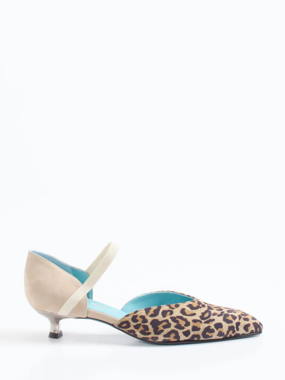 Ein Eyecatcher mit Animal-Power.Thierry Rabotin interpretiert die Damenpumps neu: als spitz zulaufende Spangenpumps mit modischem Leoprint. Ob für die nächste After-Work-Party oder ein stilbewusstes Freizeit-Outfit – dieser Schuh überzeugt mit soft strukturiertem Veloursleder in Beige und einem transparenten Kitten-Heel. Die asymmetrische Riemenführung mit Elastikeinsatz sorgt für sicheren Sitz, während das türkisfarbene Lammnappafutter innen edle Akzente setzt. Leoprint, Vintage-Vibes und Streetwear-Einflüsse machen den Kitten Heel zum Statement der Saison. Kombiniert mit einer schwarzen Clutch und zarten Gold-Creolen entsteht ein expressiver Look. Ein stilprägender Pumps mit Trendgarantie und hauseigener Passform-Expertise.