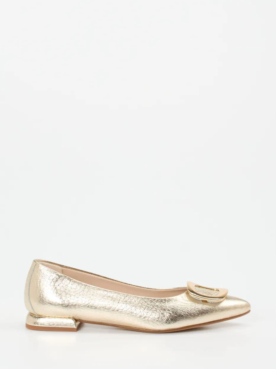 Glanzstück mit spitzer Silhouette.Andrea Puccini präsentiert stilvolle Ballerinas mit spitz zulaufender Form und glänzendem Metallicfinish – ideal für anspruchsvolle Looks. Wenn ein eleganter Auftritt bei festlichen Anlässen oder besonderen Events gefragt ist, überzeugt dieses Modell mit Komfort und Finesse. Gefertigt aus strukturiertem Metallicleder in Gold und ergänzt durch eine goldfarbene Zierschnalle im Vintage-Stil, vereinen die Ballerinas Minimalismus und femininen Chic. Die flache Gummisohle und das weiche Fußbett sorgen für angenehmen Tragekomfort. Trendbewusste Fashionistas schätzen das Design als Teil des Quiet-Luxury-Stils der Saison. Perfekt kombinierbar mit Clutch und schlichter Eleganz. Stilvoller Komfort mit modischem Feinschliff – Andrea Puccini Qualität trifft auf trendige Raffinesse.
