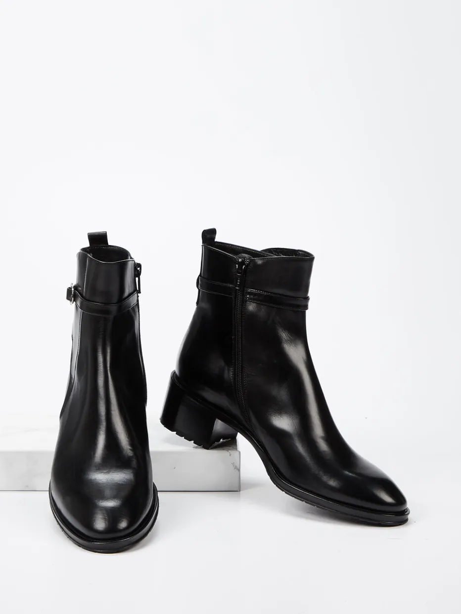 Minimalistische Eleganz mit italienischem Feinschliff.Truman’s interpretiert klassische Ankle Boots neu: Diese Damen-Stiefelette vereint feines Kalbleder mit formstabiler Silhouette und dezentem Glanz. Ob im Büro oder beim Stadtbummel – der schwarze Boot mit silberfarbener Schnalle und verdecktem Reißverschluss erfüllt den Anspruch an zurückhaltenden Chic. Der leicht glänzende Schaft unterstreicht den puristischen Look, während Blockabsatz, profilierte Gummisohle und weich gepolstertes Lederfutter Komfort bieten. Der stilvolle Ziergurt verleiht modische Akzente im Sinne des „Quiet Luxury“-Trends. Kombiniert ideal mit Wollmantel oder Ledertasche. Ein italienisches Traditionsstück – puristisch, komfortabel und zeitlos modern.