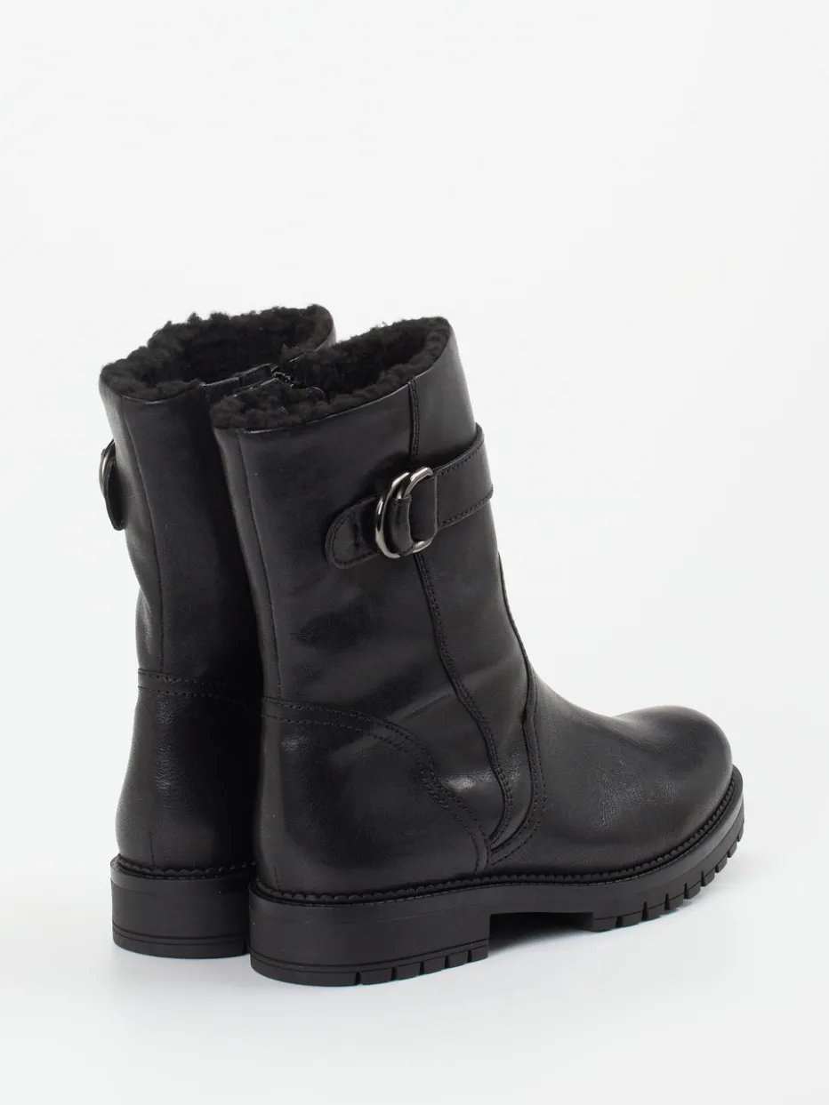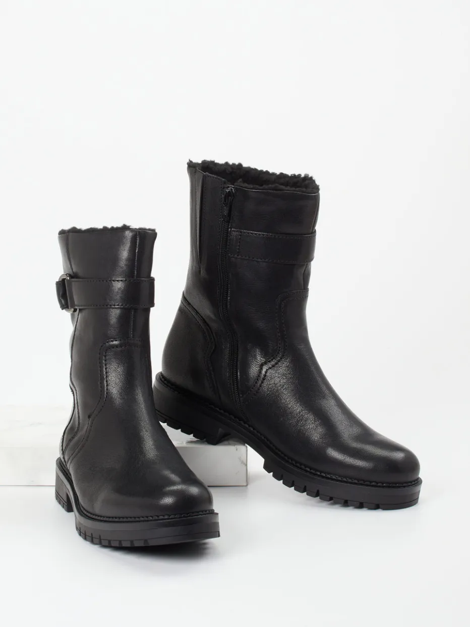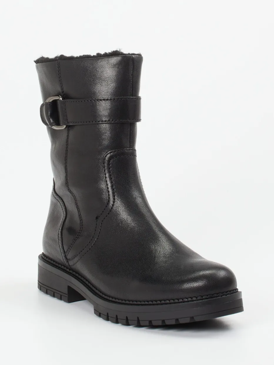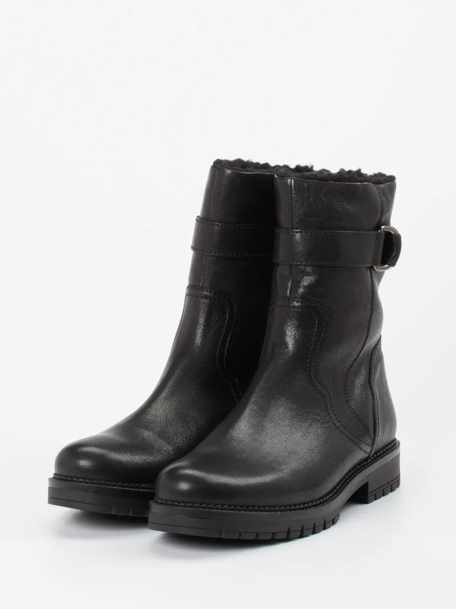 Kompakter Komfort für kalte Tage.Die Marke Gabor Comfort präsentiert eine moderne Damen-Stiefelette mit funktionellem Charakter. Ideal für winterliche Stadtgänge: Das schwarze Kalbleder überzeugt durch seine matte Oberfläche und angenehme Anschmiegsamkeit. Ein warmes Kunstfell-Futter sowie die H-Weite sorgen für hohen Tragekomfort, während die robuste Gummisohle rutschfesten Halt gibt. Der seitliche Reißverschluss erleichtert das Anziehen, eine dunkelsilberne Metallschnalle setzt einen dezenten Akzent. Die gerade Schaftform und die minimalistische Silhouette passen zum Quiet Luxury-Trend und machen das Modell vielseitig kombinierbar – etwa zu Thermo-Leggings und Wollmantel. Zeitloses Design trifft auf bewährten Gabor-Komfort.