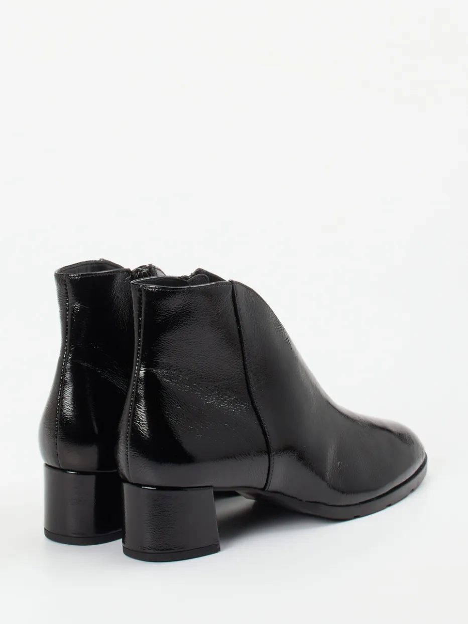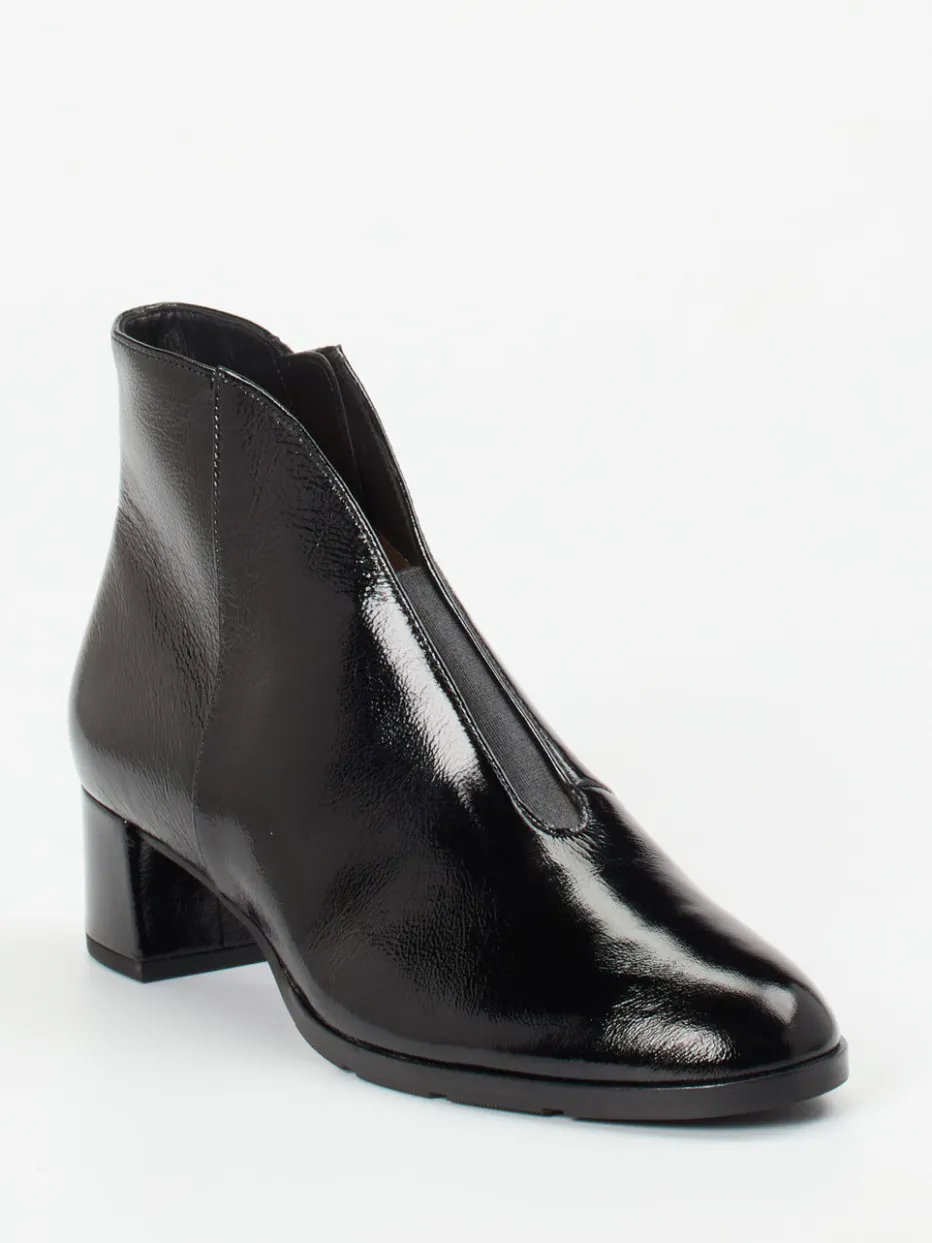 Ob fürs Büro oder den Stadtbummel – das Modell vereint Funktionalität mit zeitloser Eleganz. Schwarzes Lackleder mit glänzender Oberfläche verleiht dem klassischen, knöchelhohen Schnitt Raffinesse. Details wie ein Ton-in-Ton-Reißverschluss, glatte Nahtführung sowie ein Blockabsatz unterstreichen den stilvollen Auftritt. Weiches Lammlederfutter, ein Elasteinsatz zur Weitenanpassung und das gepolsterte Wechselfußbett sorgen für Tragekomfort auf höchstem Niveau. Der Look greift Trendthemen wie „Quiet Luxury“ und „Glossy Surfaces“ gekonnt auf und ergänzt klassische wie modische Outfits.