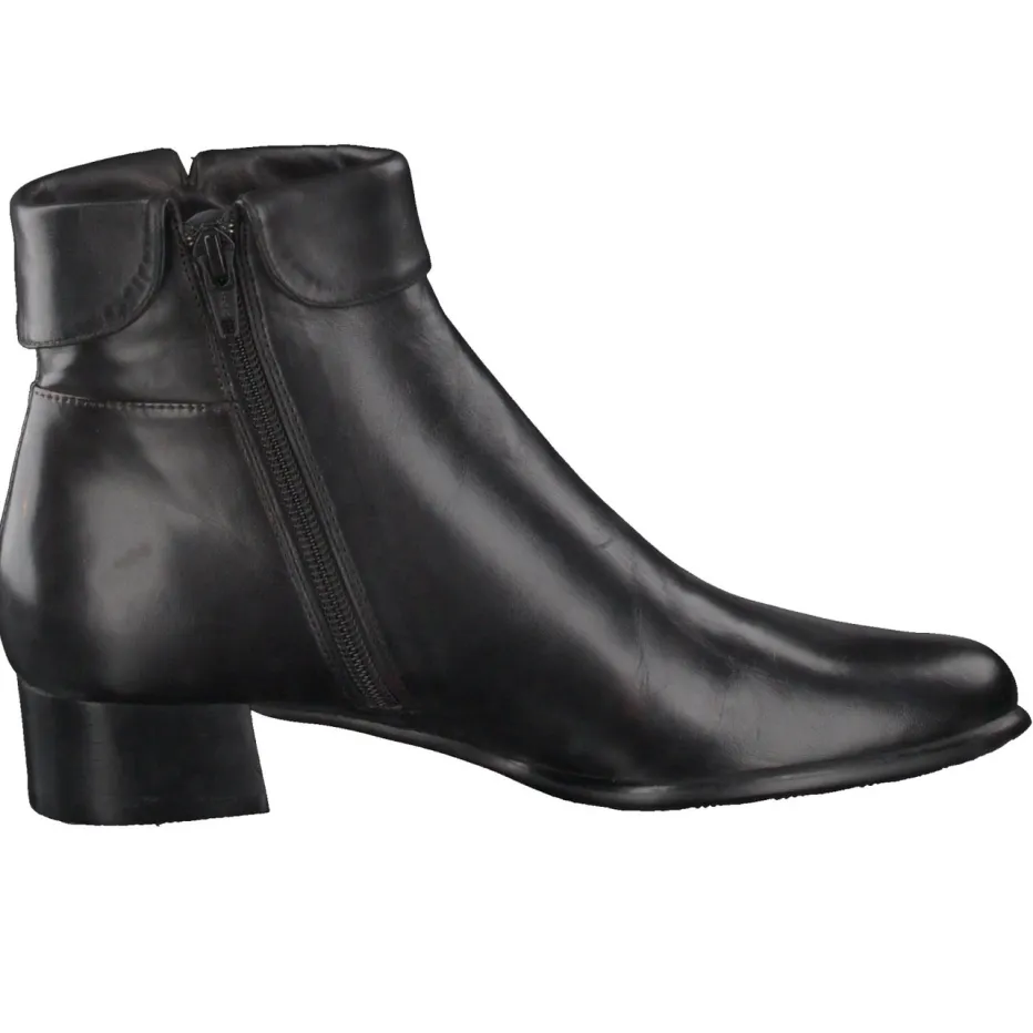 Diese klassische Damen-Stiefelette verbindet edles Lammleder mit klaren Linien und dezentem Glanz – ein vielseitiger Begleiter für stilvolle Auftritte im Alltag und Business.