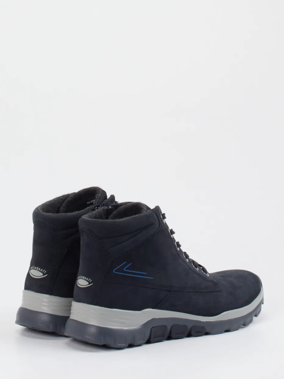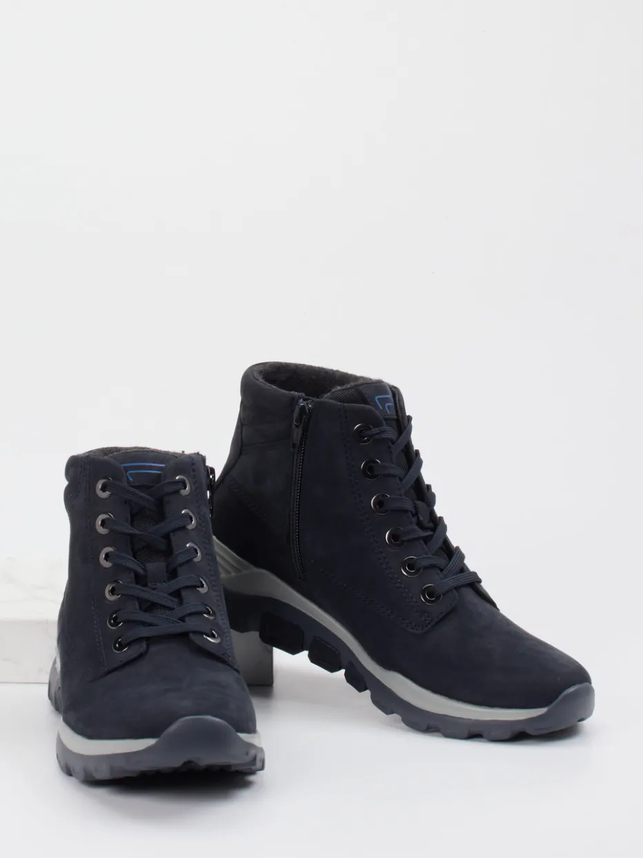 Funktionalität trifft wintertaugliches Design.Die Marke Gabor Comfort präsentiert mit dieser Schnürstiefelette ein Damenmodell für Freizeit und Outdoor. Ob bei Stadtspaziergängen oder Wochenendtrips ins Grüne – das samtig angeschliffene Nubukleder in Dunkelblau bietet stilvolle Beständigkeit. Der knöchelhohe Schnitt mit seitlichem Reißverschluss erleichtert das Anziehen, während weiches Fleecefutter für angenehme Wärme sorgt. Die profilierte Gummisohle verleiht Trittsicherheit und unterstützt den urban-outdoor-inspirierten Look. Dezente Ton-in-Ton-Logos runden das Gesamtbild ab. Passt besonders gut zu lässigen Softshelljacken und schmalen Jeans. Ein ausgereiftes Komfortmodell für die kühleren Monate.