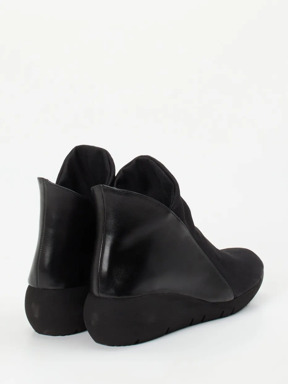 Ideal für Büro oder Stadtbummel bietet diese schwarze Stiefelette mit Keilabsatz sicheren Halt und eleganten Komfort. Der Materialmix aus Mikrofaser-Textil und weichem Lammnappa sorgt für geschmeidige Haptik und edle Optik. Dezente Ton-in-Ton-Streifen, das hellblaue Lammnappa-Futter und ein seitlicher Reißverschluss setzen stilprägende Akzente. Das rutschfeste Gummiprofil passt zur subtil sportlichen Linienführung und unterstreicht die Streetwear-Einflüsse. Kombiniert mit einem Trenchcoat ergibt sich ein funktionaler und modischer Look.