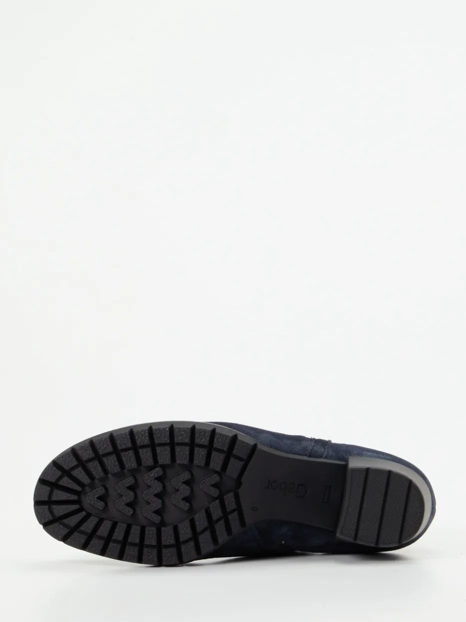 Stilvoll durch die kalte Jahreszeit.Die Damen-Stiefelette von Gabor Comfort vereint dezente Optik und funktionale Details. Für kühlere Tage eignet sich das flauschig gefütterte Modell mit seinem samtig angeschliffenen Veloursleder und komfortabler Weite G besonders gut. Der knöchelhohe Schnitt in Dunkelblau trifft auf ein cleanes Design mit Ton-in-Ton-Reißverschluss und dezentem Blockabsatz. Dank der stark profilierten Gummisohle bietet die Stiefelette Trittsicherheit im herbstlichen Stadtalltag. Der Reißverschluss innen sorgt für bequemes An- und Ausziehen. Perfekt kombinierbar mit schmalen Jeans oder Wollröcken. Gabor Comfort steht hier für hochwertigen Komfort in trendbewusster Zurückhaltung.
