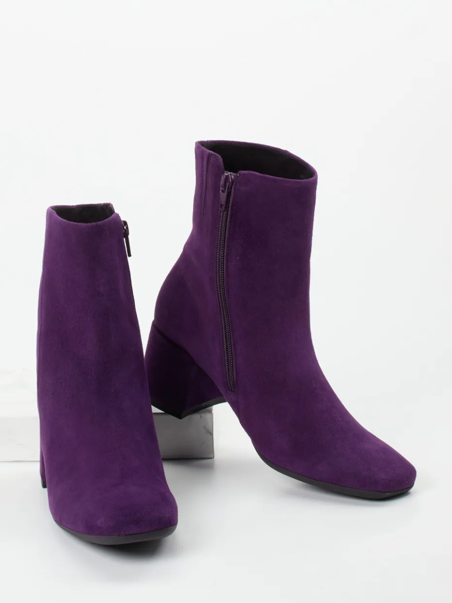 Eleganz trifft Alltagstauglichkeit.Die Marke Gabor Comfort präsentiert diese feminine Blockabsatz-Stiefelette in violettem Veloursleder auf klassisch-knöchelhoher Silhouette. Für stilbewusste Tage im Büro oder abendliche Veranstaltungen überzeugt das weich strukturierte Veloursleder durch seine matte Oberfläche und markante Farbgebung. Der lederbezogene Blockabsatz bietet mit 5 cm Höhe Stabilität und Eleganz. Der seitlich integrierte Ton-in-Ton-Reißverschluss sorgt für Komfort und ein reduziertes Designbild. Farblich im Trend der kommenden Saisons und mit rutschhemmender Gummisohle ideal kombinierbar zum grauen Strickkleid oder schwarzer Crossbody-Tasche. Ein modisches Statement mit angenehmem Laufgefühl – typisch Gabor Comfort.