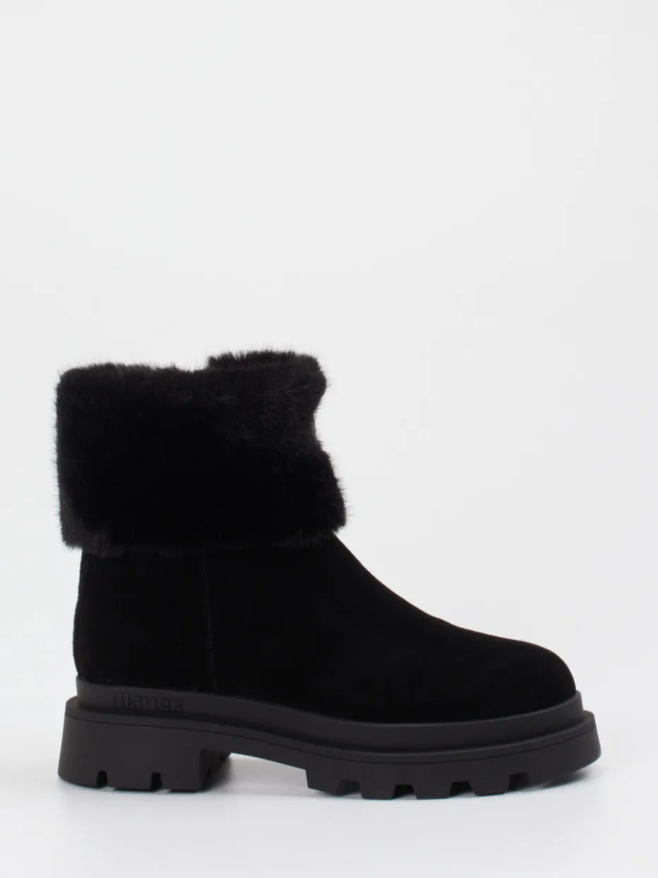Die Marke Blauer präsentiert eine moderne Damen-Stiefelette aus hochwertigem Veloursleder.