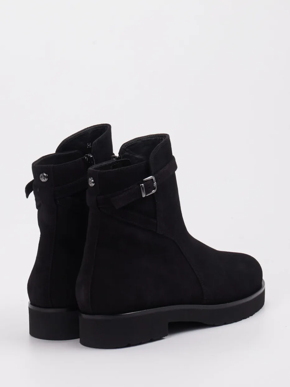 Diese schwarze Veloursleder-Stiefelette von Hassia vereint funktionale Eleganz mit dezenter Detailverarbeitung. Ideal für urbane Alltagslooks mit einem Gefühl von stillem Luxus.