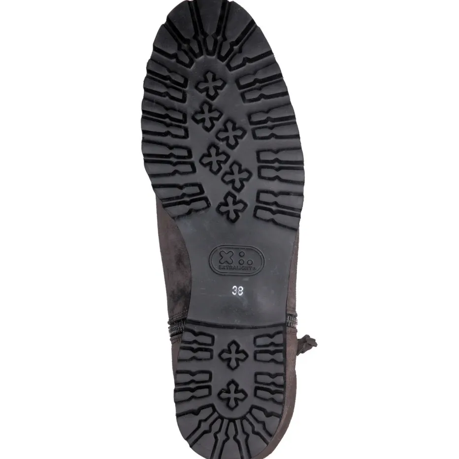 Wärmender Komfort für urbane Wintertage.Die Damen-Stiefelette von Mannori begleitet stilvoll durch die kalte Saison. Perfekt für frostige Stadtspaziergänge: Das taupefarbene Veloursleder besitzt eine matte Oberfläche und verleiht dem Schuh eine elegante Zurückhaltung. Innen sorgt echtes Lammfell für wohlige Wärme, während die leichte Gummisohle dank Profil sicheren Halt bietet. Die klar geschnittene Form mit leicht abgerundeter Spitze wirkt modern und komfortabel zugleich. Silberfarbene Reißverschlüsse an beiden Seiten, davon einer mit Fransen-Zipper, setzen dezente Akzente. Ein Schuh zwischen Funktionalität und Minimalismus. Höchster Tragekomfort trifft auf durchdachtes Design – charakteristisch für Mannori.