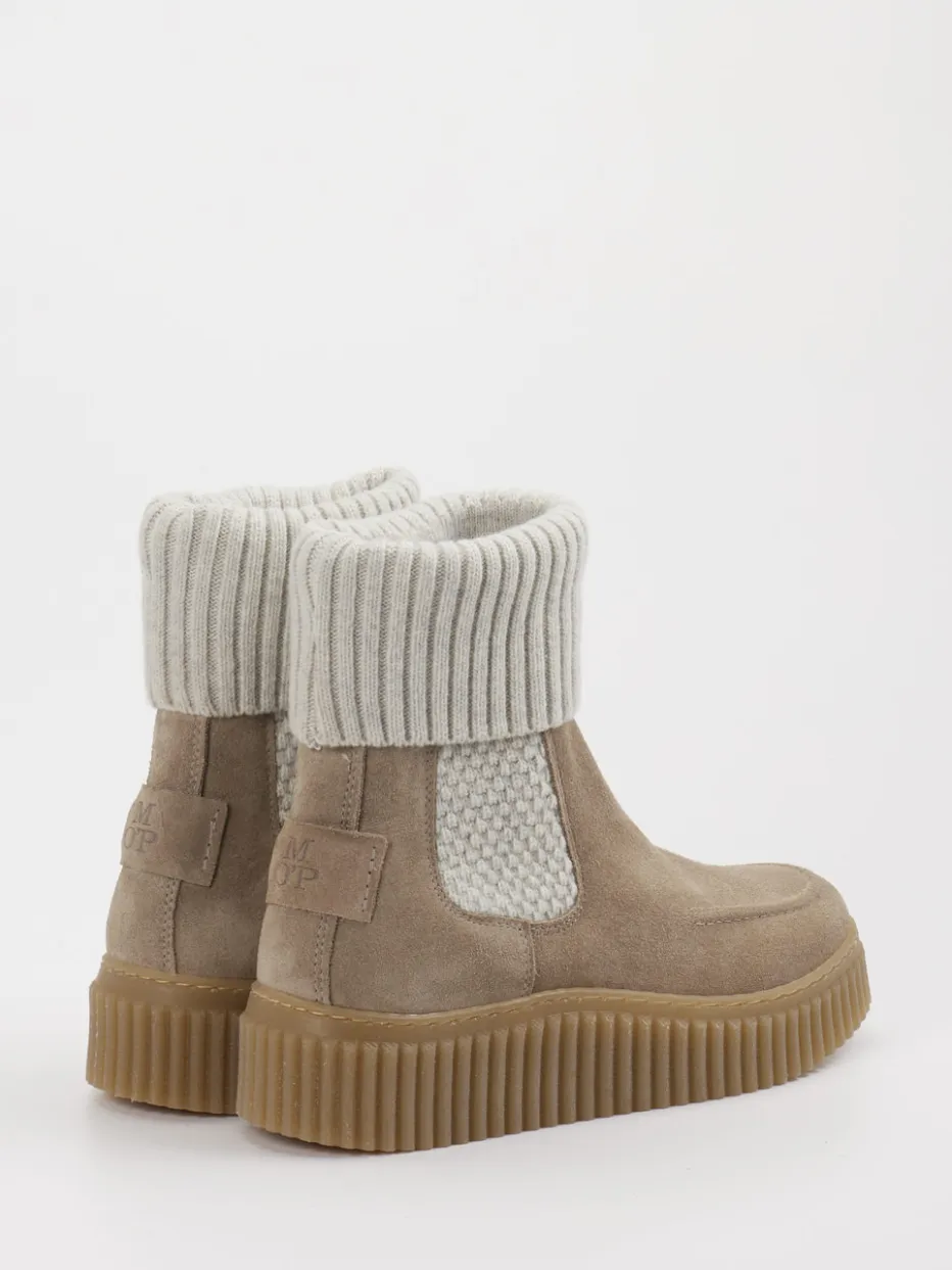 Die Winter-Stiefelette von Marc O’Polo verbindet weiches Veloursleder mit einem elastischen Strickschaft – stylisch und funktional zugleich für kalte Tage.