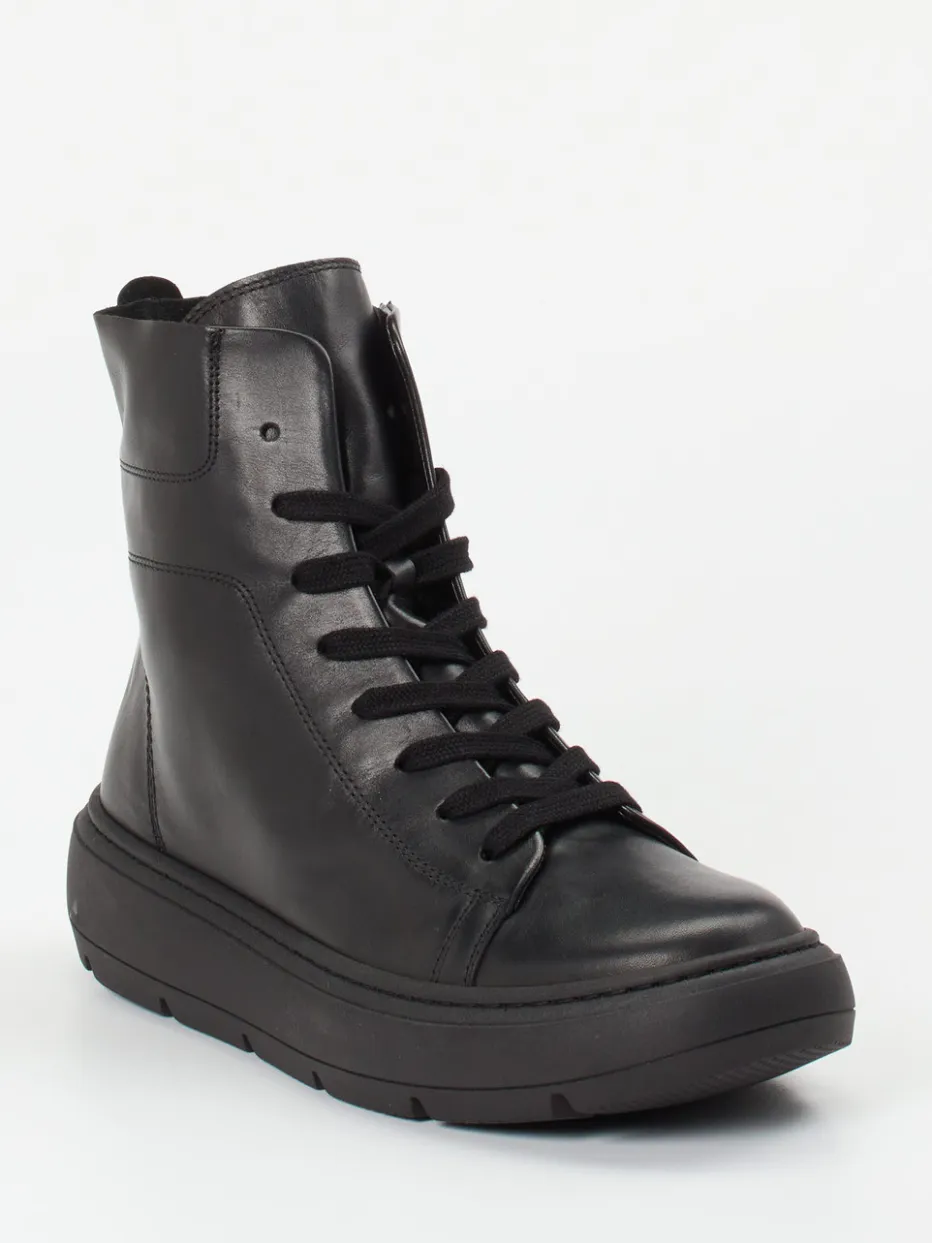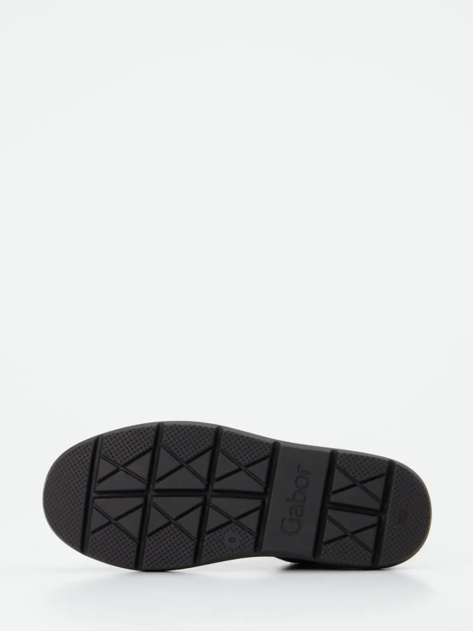 Urban Style für Alltag und Büro.Diese Schnürstiefelette von Gabor überzeugt durch klaren Minimalismus und robusten Komfort. Ob für den morgendlichen Arbeitsweg oder entspannte City-Tage – das butterweiche Kalbleder mit matter Oberfläche verleiht dem schwarzen High-Top-Modell einen edlen Look. Die Kombination aus Schnürung und seitlichem Reißverschluss ermöglicht ein unkompliziertes Handling, während innen Microfaserfutter und Wechselfußbett für Wohlgefühl sorgen. Eine markant profilierte Gummisohle unterstützt mit 3 cm Plateauhöhe und 4 cm Absatz den angesagten Chunky-Trend – funktional und stilbewusst zugleich. Kombiniert mit dunklem Wollmantel oder cleaner Hose entsteht ein ruhiger, urbaner Look. Gabor vereint zeitloses Design mit komfortorientierter Funktionalität.