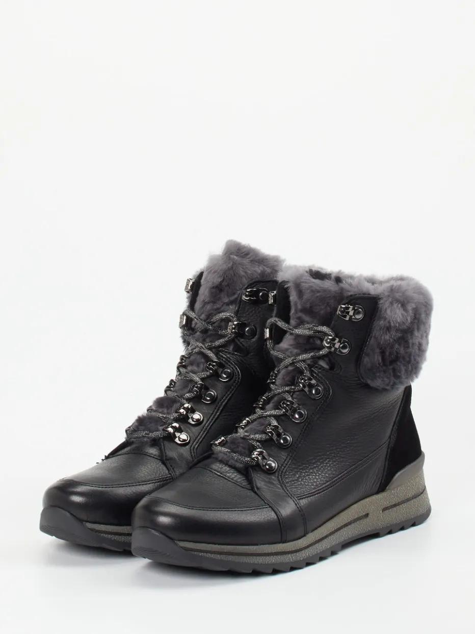 Diese robuste Stiefelette von Ara überzeugt durch wetterfestes Kalbleder, warmes Wollfutter und eine profilierte Gummisohle – ideal für Alltag und Winterspaziergänge.