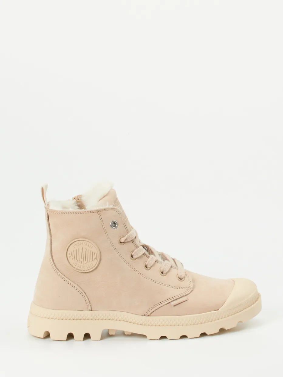 Warmer Komfort für kalte Tage.Diese Stiefeletten von Palladium aus der Damenkollektion kombinieren lässige Outdoor-Tauglichkeit mit minimalistischer Ästhetik. Ideal bei winterlicher Witterung, überzeugt das beige Nubukleder – samtig angeschliffen – durch Strapazierfähigkeit und stilvolle Zurückhaltung. Das warme Innenfutter und die griffig profilierte Gummisohle sorgen für verlässlichen Schutz bei Kälte und Nässe. Durch Schnürung und seitlichen Reißverschluss gelingt der Einstieg bequem. Details wie die tonige Logo-Prägung ergänzen das cleane Design. Perfekt kombinierbar mit Steppjacke und Thermo-Leggings für einen modernen Gorpcore-Look. Ein funktionaler Winterboot, der Stilbewusstsein und Alltagstauglichkeit vereint.