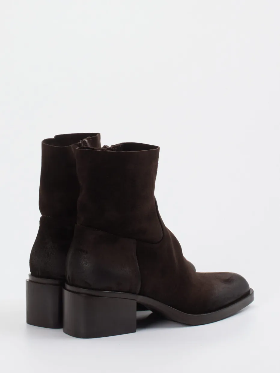 Charakterstarkes Design für urbane Looks.Die Marke Elena Iachi präsentiert mit diesen Ankle Boots ein elegantes Damenmodell in der Kategorie Stiefeletten. Ideal für Alltag und Büro verbinden sie softes Veloursleder mit einem Used-Finish an Ferse und Spitze – für eine dezente Vintage-Note. Das kaffeebraune Obermaterial zeigt sich matt und samtig angeschliffen, der klare Schnitt mit leicht eckiger Zehenpartie setzt auf Understatement. Innen sorgt ein Ton-in-Ton Reißverschluss für einfaches Anziehen, der mittelhohe Blockabsatz ergänzt harmonisch die formklare Silhouette. Trendig zwischen Quiet Luxury und Soft Edge, passen sie perfekt zu Kaschmirmantel oder Ledertasche. Ein Modell mit Ausdruckskraft und zeitloser Eleganz – typisch Elena Iachi.