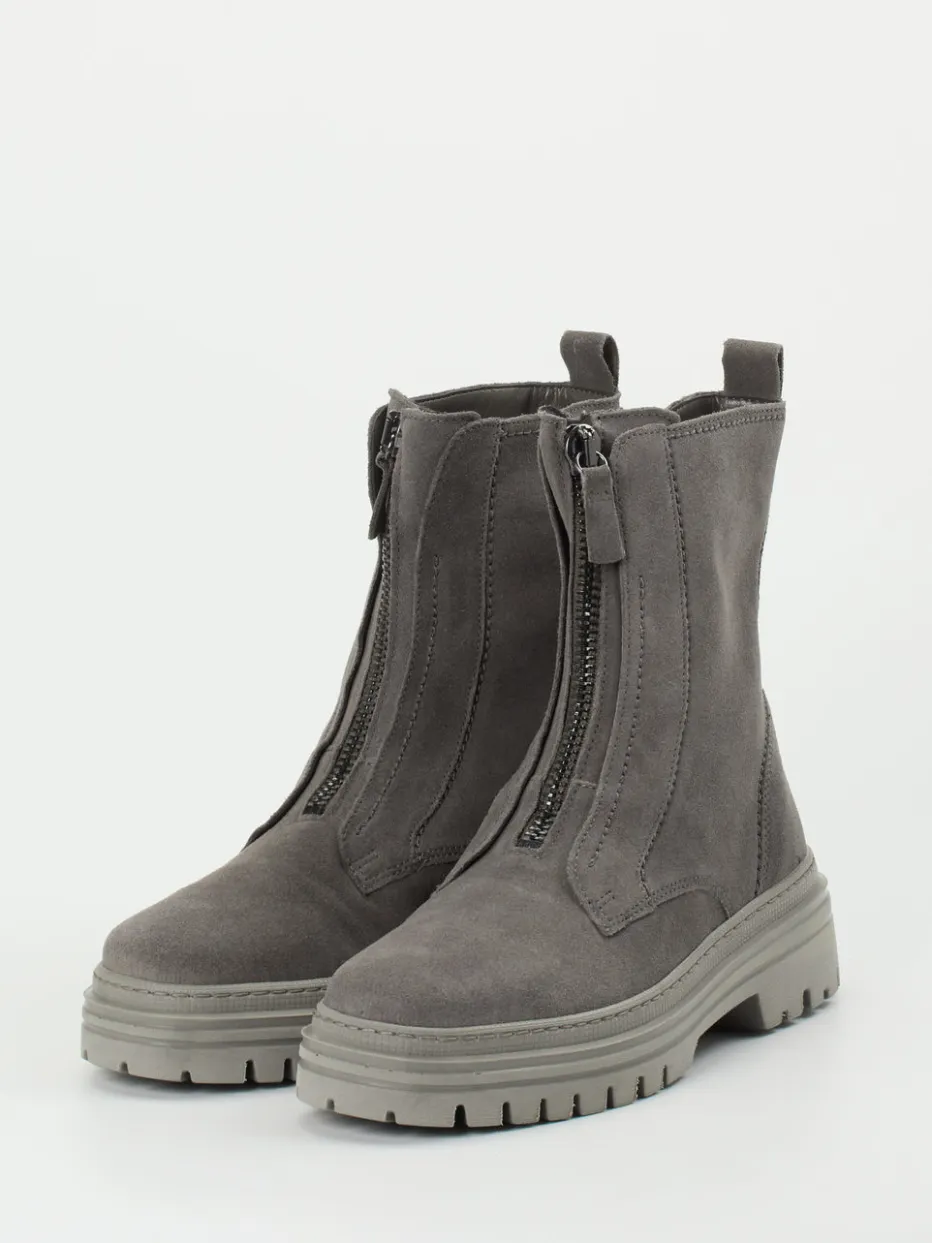 Die Gabor-Stiefelette überzeugt mit Frontzip, weichem Veloursleder und markanter Profilsohle – ein stylischer Begleiter für urbane Herbsttage.