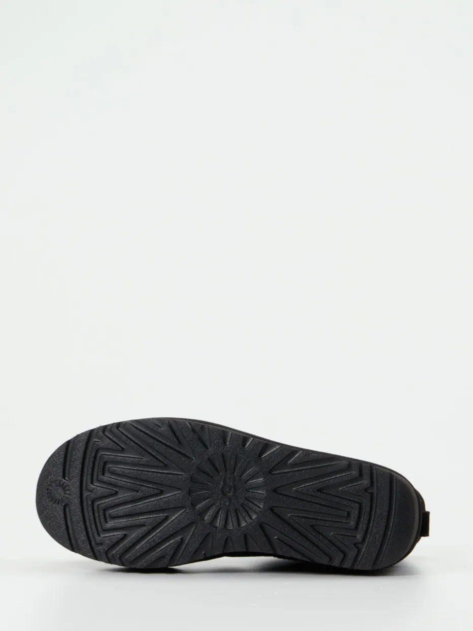 Warm durch den Winter mit Style.UGG interpretiert die Plateau-Stiefelette neu und schafft einen idealen Mix aus Komfort und Trendbewusstsein. Für frostige Tage gemacht, überzeugt der Boot durch wärmendes schwarzes Lammfell-Innenfutter und kuscheligen Veloursleder-Schaft. Die breite, tonige Plateau-Sohle sorgt für modernen Streetwear-Charakter – unterstützt durch matte Oberfläche, Zuglasche und das typische Logo-Patch. Die Schlupfform ermöglicht bequemes Anziehen, die profilierte Treadlite-Sohle bietet rutschfesten Halt. Ideal für minimalistische Casual-Outfits und Cozy-Layering mit Daunenjacke und Thermohose. Verlässlicher UGG-Komfort trifft auf angesagten Plattform-Look der Saison.