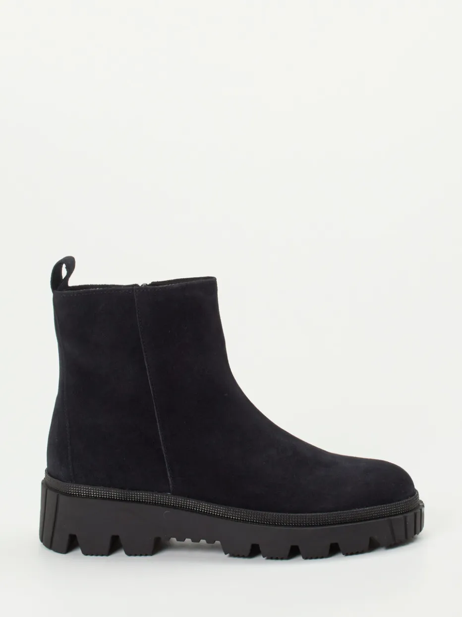 Diese Gabor-Stiefelette vereint robustes Veloursleder mit moderner Chunky-Sohle und sorgt so für komfortable Streetwear-Tauglichkeit im Alltag.