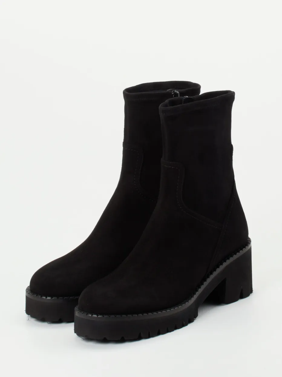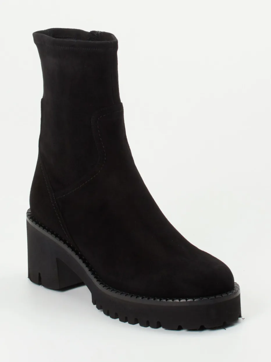 Schwarzes Veloursleder, klare Linienführung und eine betonte Profilsohle verleihen dieser Stiefelette von Truman’s ihre stilvolle Präsenz im Alltag und Büro.