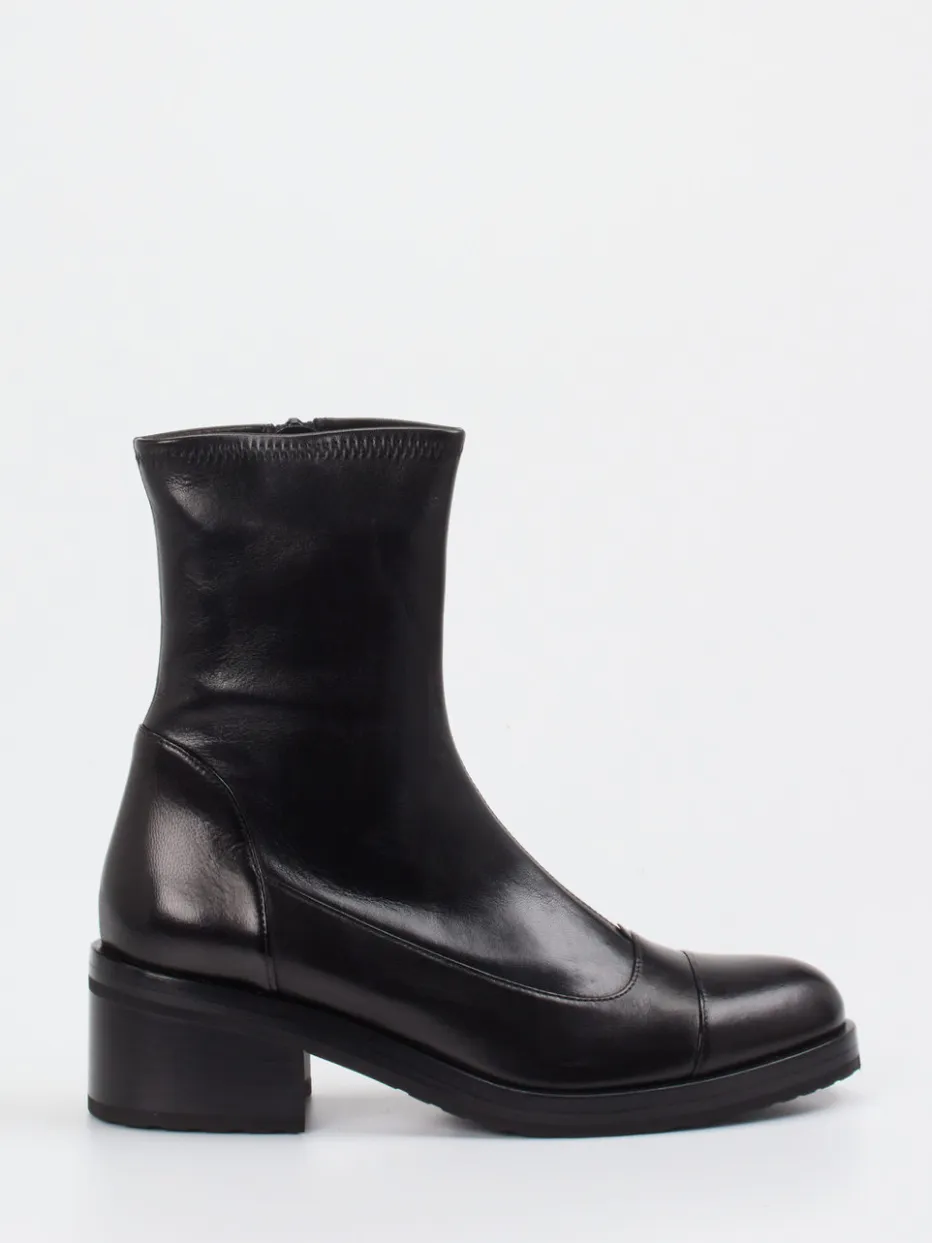 Puristische Eleganz für urbane Looks.Truman’s interpretiert die Damen-Stiefelette neu: klar, klassisch, luxuriös. Die samtig matte Oberfläche des schwarzen Veloursleders betont die schlanke, knöchelhohe Form und lässt die schlichte Ästhetik dieser Stiefelette stark zur Geltung kommen. Verdeckte Ton-in-Ton-Nähte, ein innenliegender Reißverschluss und ein 5,5 cm hoher Blockabsatz geben dem Design moderne Klarheit. Die profilierte Gummisohle unterstützt den dezenten Komfortanspruch ebenso wie das Innenfutter aus Lammnappa. Inspiriert vom Stilcode „Quiet Luxury“ eignet sich das Modell für anspruchsvolle Office-Looks wie lässige Everyday-Outfits. Kombiniert mit Wollmantel und Lederaccessoires entsteht ein rundum stimmiger Auftritt. Reduziert im Design, hochwertig in der Verarbeitung – Truman’s Handschrift in Reinform.