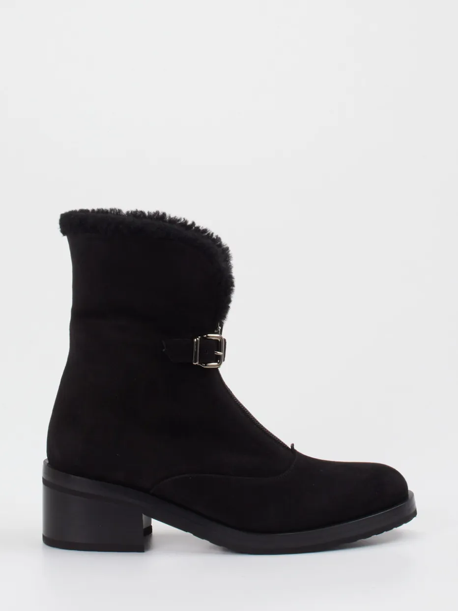 Diese robusten Damen-Stiefeletten aus edlem Veloursleder punkten mit wärmendem Lammfellfutter und stilvollen Utility-Details. Ideal für kühle Tage mit modischem Anspruch.