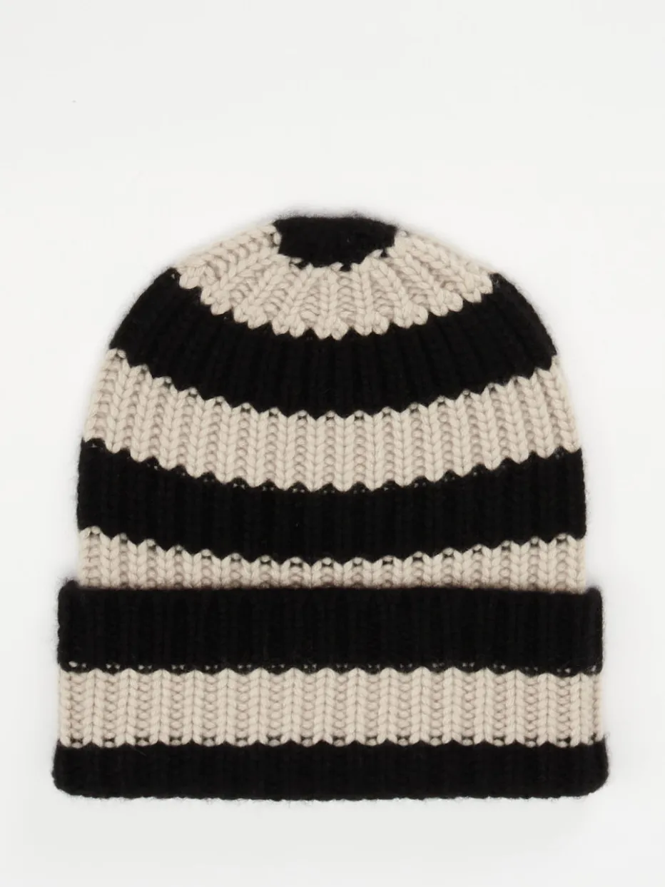 Weich und warm zugleich: Diese luxuriöse Strickmütze aus reinem Kaschmir kombiniert klassisches Design mit modischem Streifen-Look – ideal für stilbewusste Wintertage.