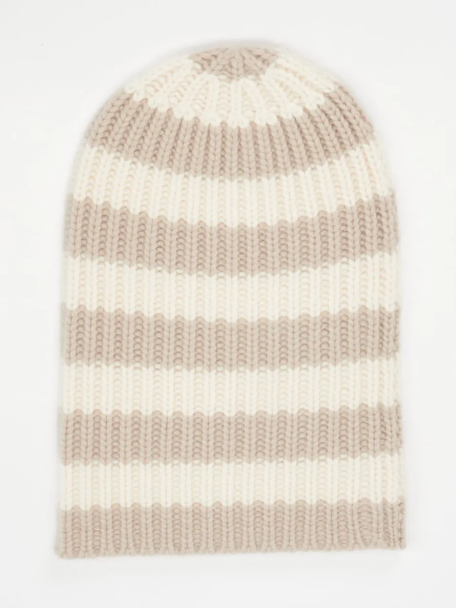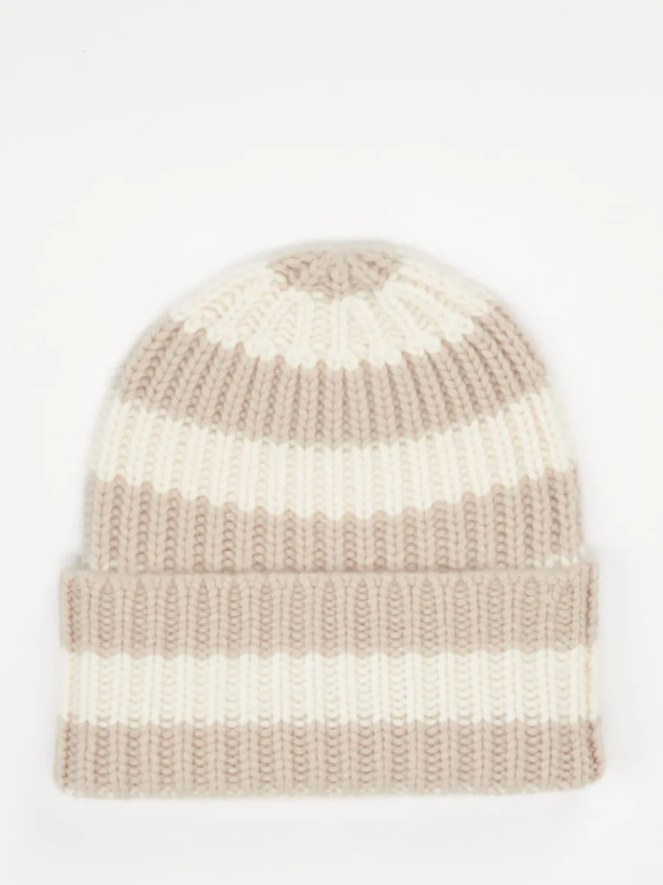 Die Kombination aus edlem Kaschmir und minimalistischer Streifenoptik macht diese Mütze zum stilvollen Essential für kühle Tage.