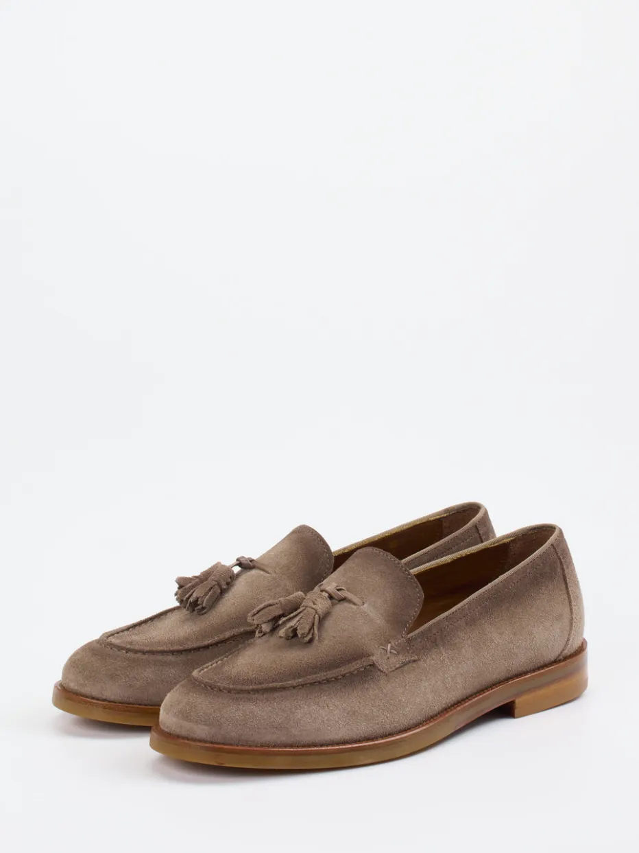 Ideal für Büro-Outfits oder entspannte Anlässe mit stilvoller Note: Das Modell aus hochwertigem Veloursleder, samtig angeschliffen und in ruhigem Taupe gehalten, wirkt dank Quasten, Mokassin-Ziernähten und klassischer Schlupfform zeitlos-elegant. Ton-in-Ton-Nähte und ein feines Lederfutter unterstreichen die edle Verarbeitung. Die durchgenähte Ledersohle mit gummiertem Noppenprofil sorgt für sicheren Tritt. Kombiniert mit Chinos und Leinenhemd entsteht ein dezenter „Quiet Luxury“-Look.