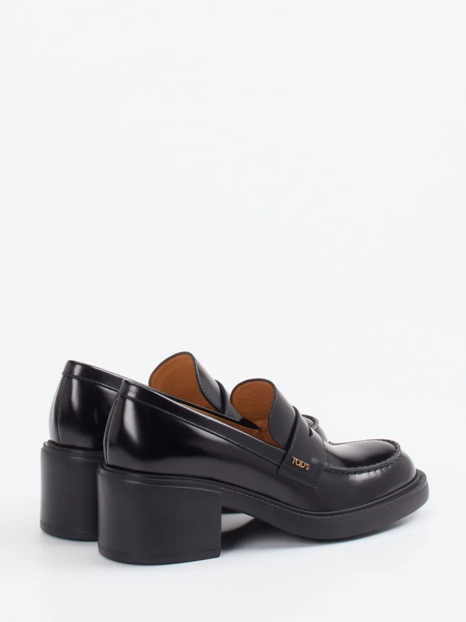 Dieser Loafer von Tod’s verbindet klassisches Design mit modernem Minimalismus. Glänzendes Hochglanzleder, goldfarbene Details und ein bequemer Blockabsatz prägen den hochwertigen Look.
