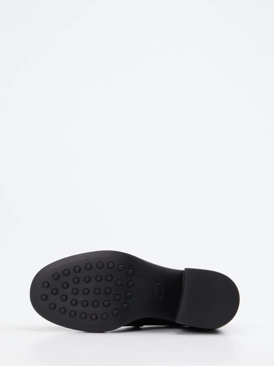 Eleganz mit moderner Klarheit.Tod’s interpretiert mit diesem Damen-Loafer einen zeitlosen Klassiker neu. Ideal für stilbewusste Alltagsmomente und den Business-Kontext überzeugt dieser Loafer mit hochwertigem Hochglanzleder, samt goldfarbenem Logodetail und klassischem Schlupfdesign. Das schwarze Finish wirkt edel und lässt sich vielseitig kombinieren. Der komfortabel gearbeitete Blockabsatz mit etwa 5,5 cm Höhe bringt modische Präsenz und sicheren Stand. Ton-in-Ton-Nähte und die glatte Silhouette unterstreichen den minimalistischen Charakter – passend zum Trend „Quiet Luxury“. Ein stilvoller Begleiter mit ikonischer Tod’s-Handschrift – elegant, geradlinig, modern.
