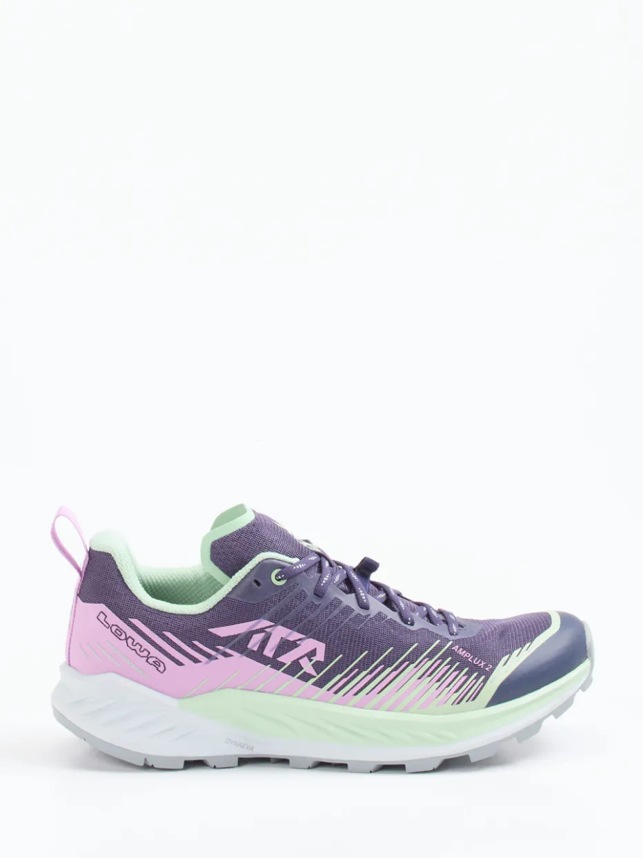 Pastell trifft Performance.Lowa präsentiert sportliche Damen-Trailrunning-Schuhe in frühlingshafter Farbgestaltung. Für dynamische Wanderungen und trendbewusste Outdoor-Aktivitäten bieten diese Schuhe durch ihr atmungsaktives Textilmaterial mit mattem Mesh-Einsatz optimalen Tragekomfort. Der violette Grundton mit fliederfarbenen und mintgrünen Akzenten sowie reflektierende Details verleihen dem Design Leichtigkeit. Die sportlich-dynamische Silhouette, verstärkte Zehenkappe und griffig profilierte Gummisohle sorgen für Stabilität auf unebenem Terrain. Die Schnürung erlaubt individuelle Anpassung, während der Look lässig in Streetwear-Stylings integriert werden kann. Trailcore-Ästhetik mit funktionalem Anspruch aus dem Hause Lowa.