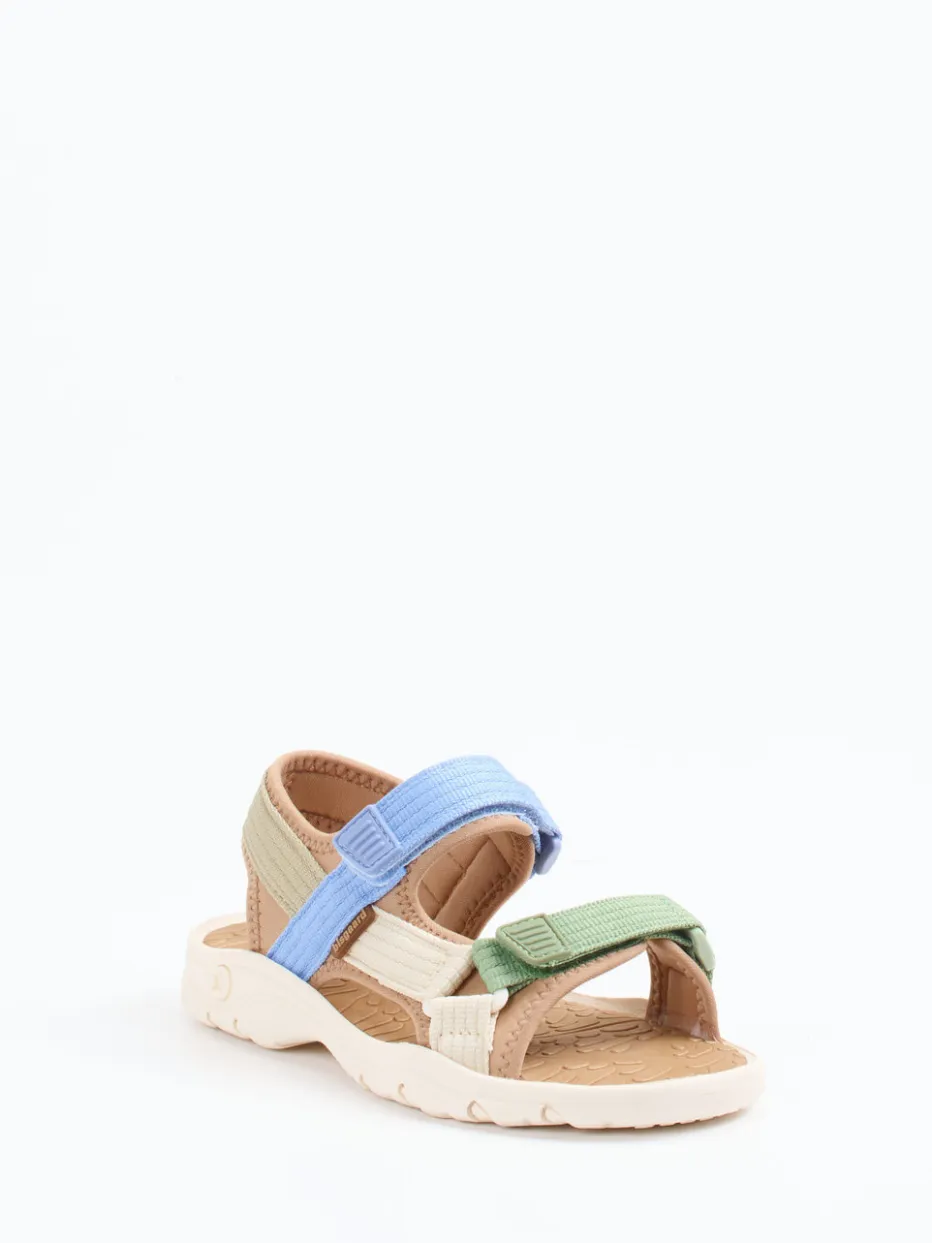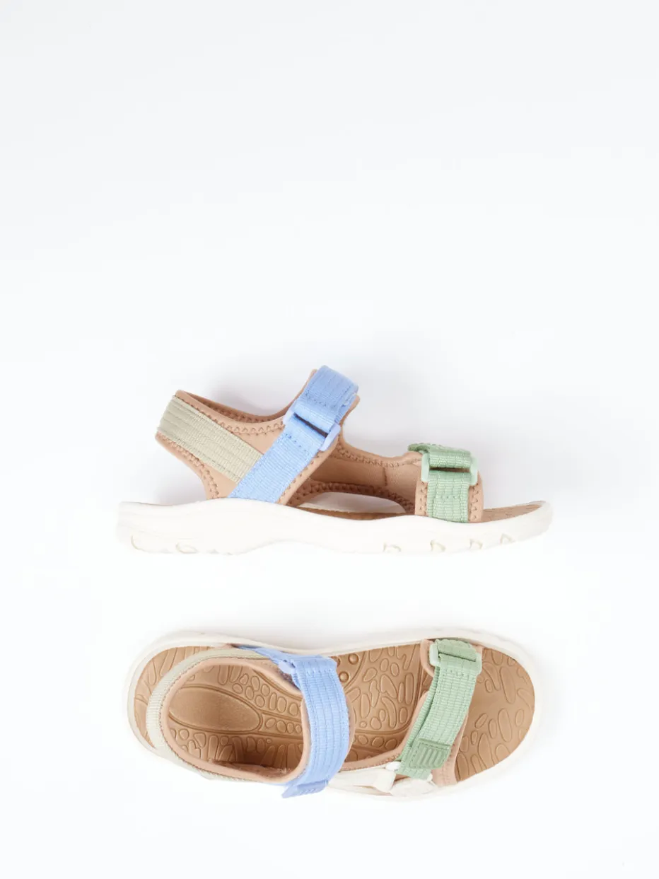 Für leichte Schritte auf großen Abenteuern.Bisgaard präsentiert mit dieser Kindersandale eine funktionale Outdoor-Begleiterin für warme Tage. Ob beim Wandern, auf dem Spielplatz oder im Urlaub – die offen geschnittene Sandale überzeugt mit einem angenehmen Textilmaterial, das sich durch eine matte Oberfläche und gepolsterte Riemen auszeichnet. Die Kombination aus Beige, Salbeigrün und Hellblau verleiht einen sanften Look, während die mehrfachen Klettverschlüsse das An- und Ausziehen erleichtern. Eine rutschfeste Gummisohle mit Rillenprofil bietet Halt auf verschiedenen Untergründen. Der geformte Sohlenaufbau und das strukturierte Fußbett sorgen für Laufkomfort. Ideal zu lockeren Freizeit-Outfits oder Outdoor-Looks. Kindgerechtes Design trifft auf durchgängigen Tragekomfort – typisch Bisgaard.