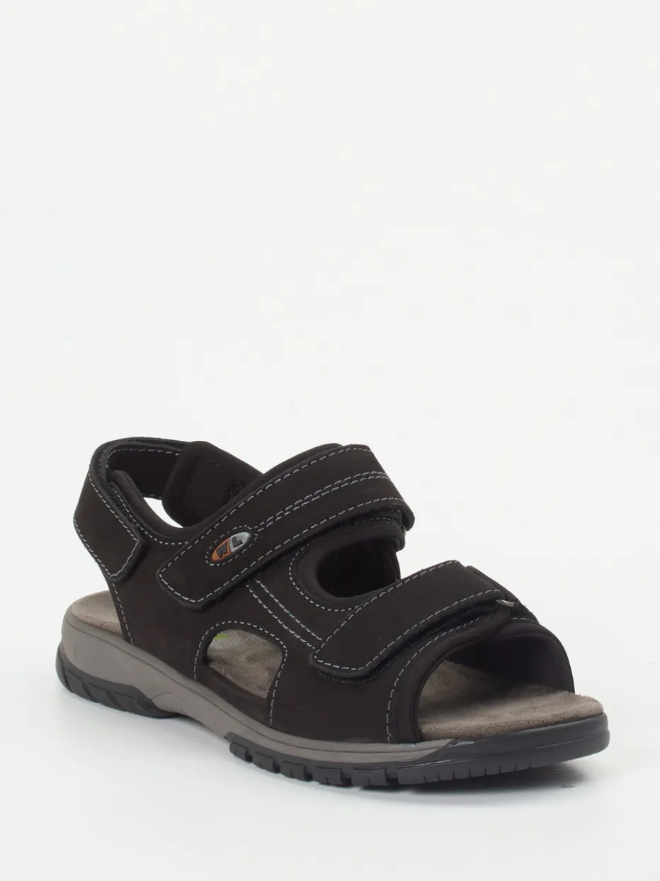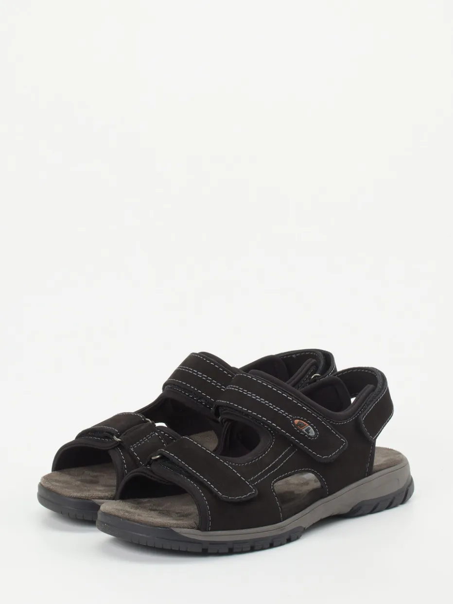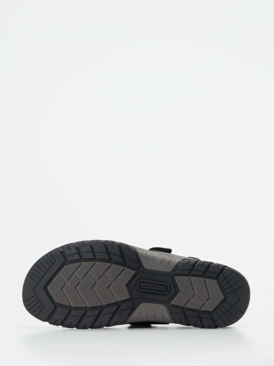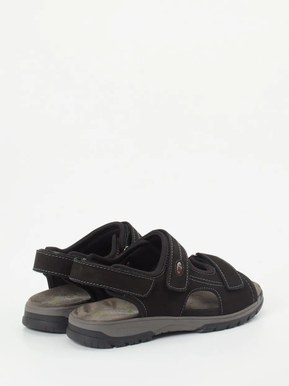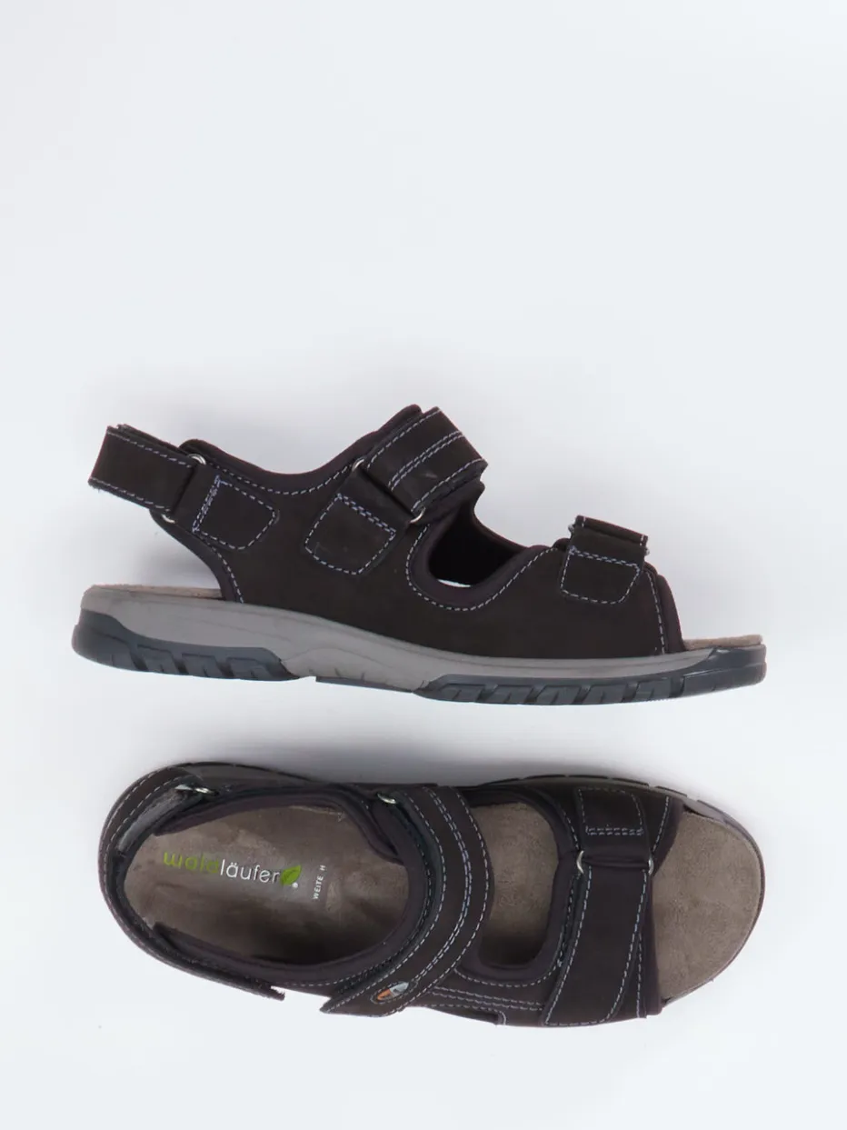 Für Komfort in Bewegung.Waldläufer präsentiert diese funktionale Herren-Trekkingsandale in klassischem Schwarz. Ideal für längere Spaziergänge oder entspannte Tage im Freien: Das ergonomisch geformte Fußbett sorgt für hohen Tragekomfort, während das solide gearbeitete Nubukleder samtig angeschliffen wirkt und mit weichem Textil hinterlegt ist. Drei individuell verstellbare Klettverschlüsse und ein gepolsterter Fersenriemen unterstützen eine präzise Anpassung. Weiß abgesetzte Kontrastnähte, eine profilierte Gummisohle sowie ein zurückhaltendes Markenlogo runden das sportive Design ab. Outdoor-inspirierte Schlichtheit trifft auf durchdachte Alltagstauglichkeit. Waldläufer steht für kompromisslosen Komfort mit smarter Funktionalität.