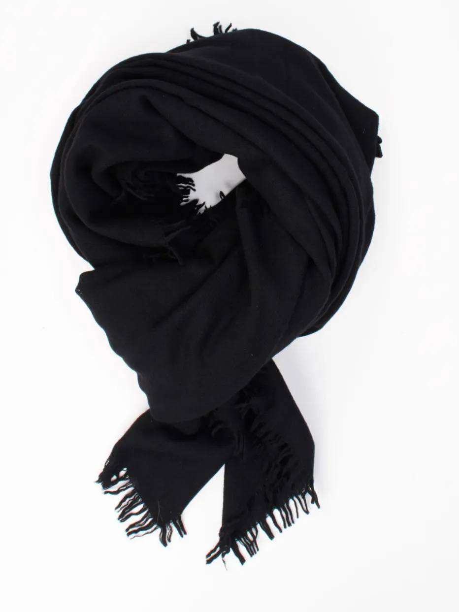 Der schwarze Schal von Blui kombiniert weichen Woll-Kaschmir-Mix mit klassischem Design und ist ideal für stilvolle Layering-Looks geeignet.