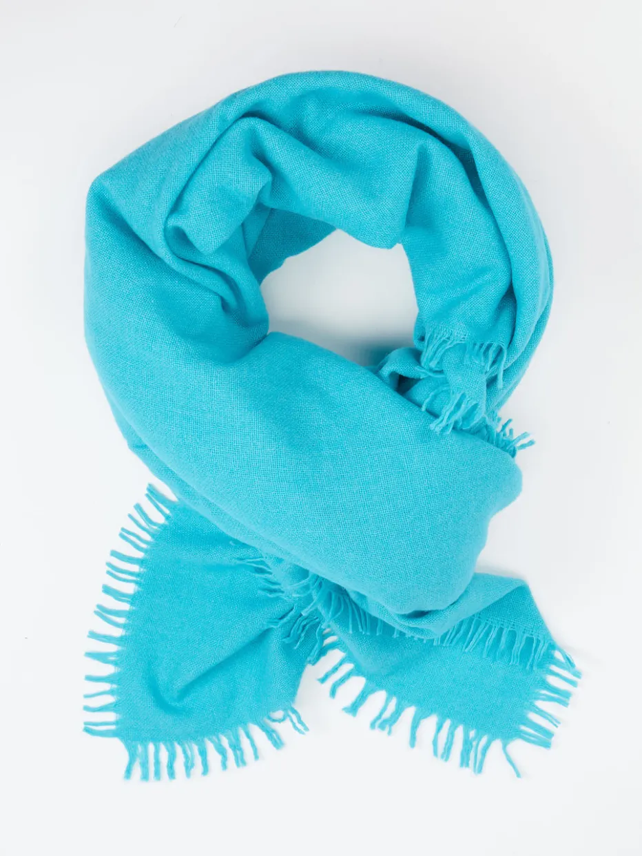Mit diesem quadratischen Tuch der italienischen Marke Blui machen Sie alles richtig! Das türkisfarbene Material mit Kaschmir-Anteil ist wunderbar weich und anschmiegsam. Die Fransen verleihen dem vielfältigen Allrounder das gewisse Etwas. – Material: 80% Wolle, 20% Kaschmir – Farbe: türkis – Maße: ca. 155 x 155 cm – Pflegehinweis: Handwäsche