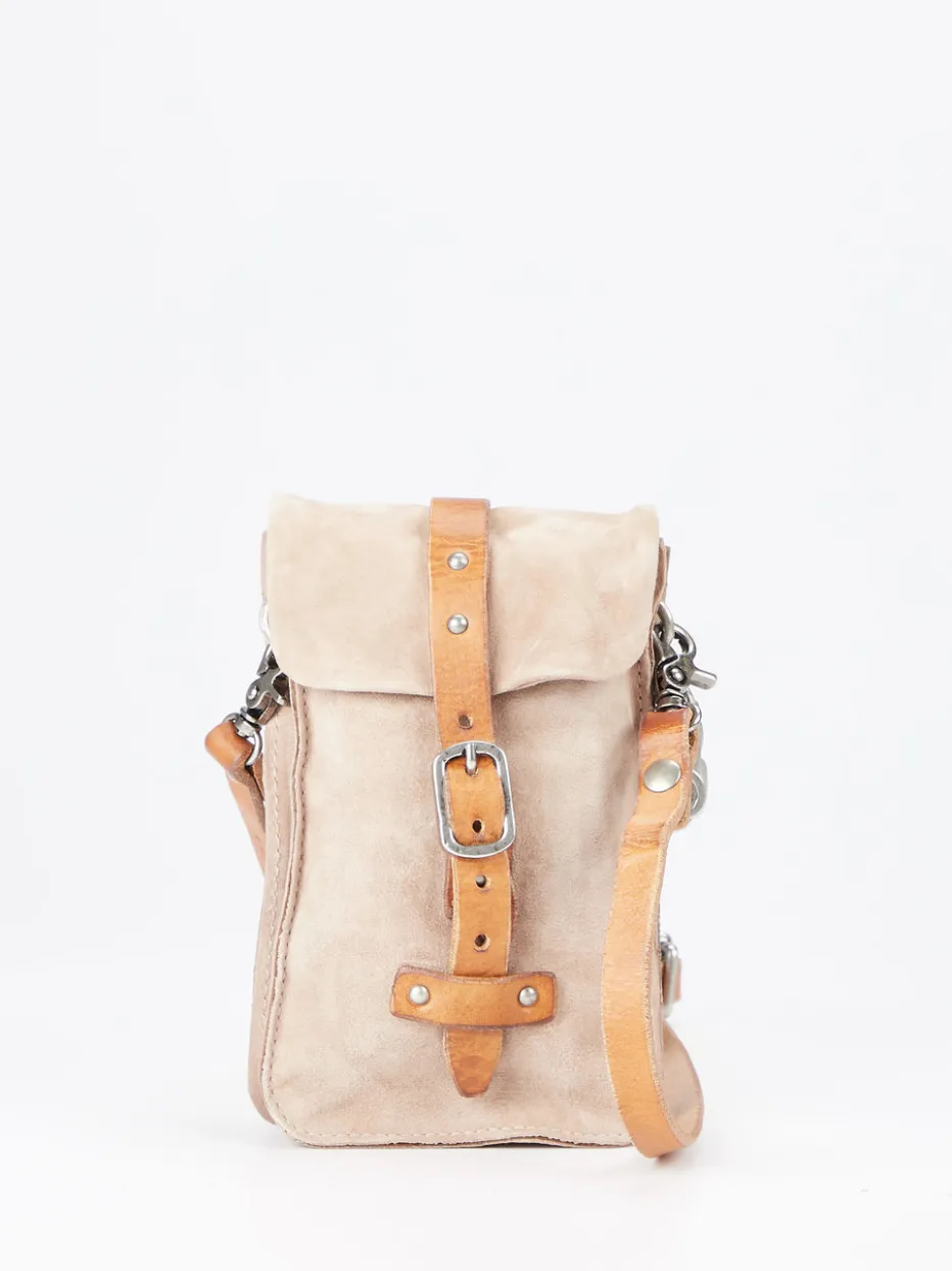 Die Marke A.S.98 zeigt sich mit dieser jungen Umhängetasche wieder besonders innovativ. Das hell-taupefarbene, rustikal wirkende Veloursleder des Korpus wird durch das Hellbraun der Lederriemen ergänzt. Die drei Innentaschen bieten genug Raum für Ihr Smartphone und die Accessoires des Alltags! – Obermaterial: Veloursleder – Futter: Leder – Farbe: taupe – Größe: ca. 18 x 11 x 4 cm (H x B x T) – Schulterriemen: max. Länge ca. 120 cm, abnehmbar, verstellbar – Verschluss: Überschlag mit Druckknopf – Innen: drei Steckfächer