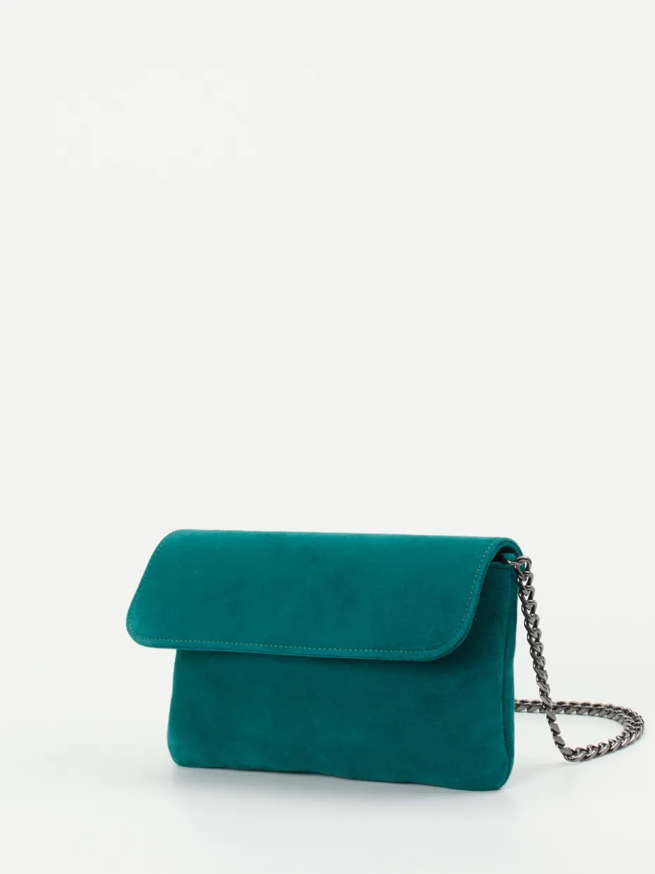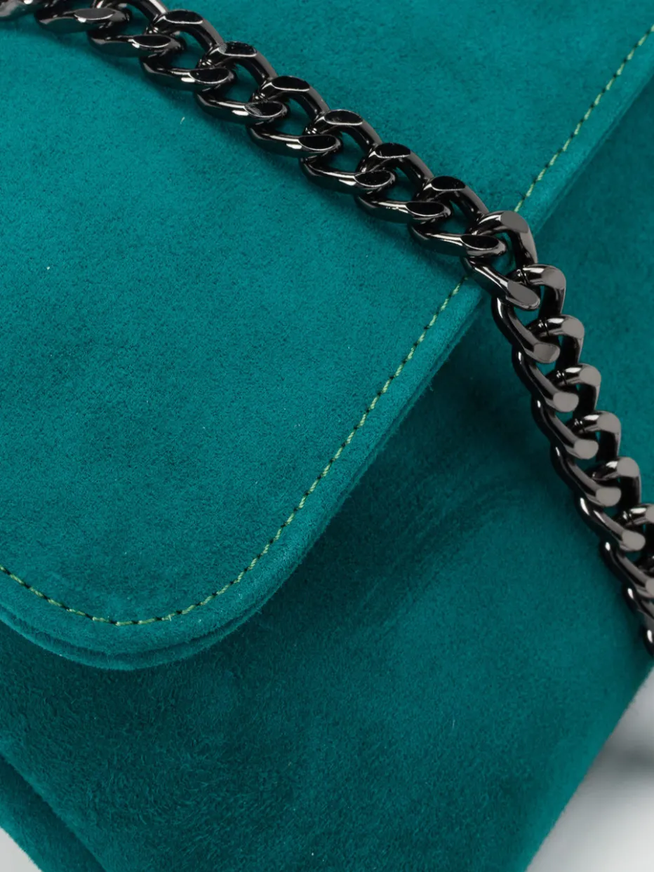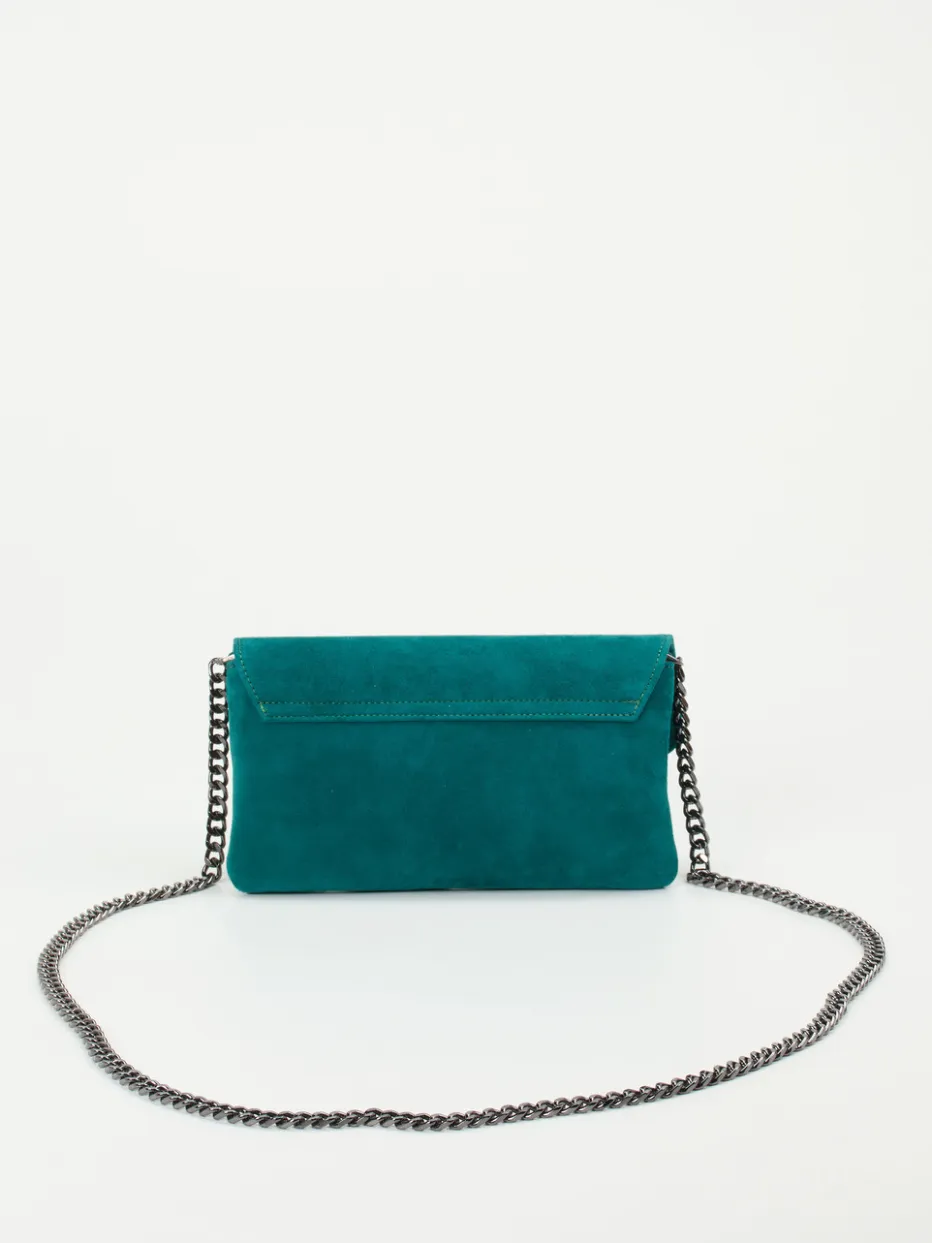 Ein Hingucker ist diese süße Umhängetasche der Marke Konstantin Starke. Das petrolfarbene Veloursleder besticht mit seiner attraktiven Farbe und seiner weichen Haptik. Der Schulterriemen zeigt sich als anthrazitfarbene, filigrane Kette, die die elegante Note der Tasche unterstreicht. Der Innenraum enthält genügend viel Platz für die wichtigsten Utensilien wie Portemonnaie, Handy und Lippenstift. Ein Accessoire, das nie aus der Mode kommt! – Obermaterial: Veloursleder – Futter: Textil – Farbe: Petrol – Größe: ca. 14 x 23 x 5 cm (H x B x T) – Schulterriemen: ca. 120 cm – Verschluss: Druckknopf