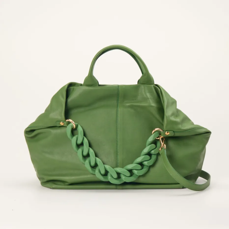 Der geräumige Shopper von Konstantin Starke überzeugt mit griffigem Kalbleder und modischer Farbgebung in Grasgrün – ideal für urbane Looks mit Stilbewusstsein.