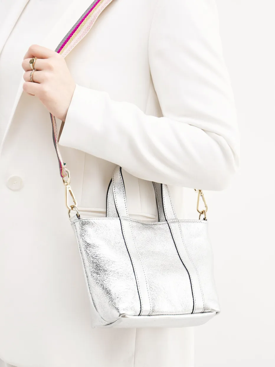 Diese kompakte Metallic-Tasche verbindet minimalistisches Design mit expressiven Details und bietet flexible Styling-Optionen für trendbewusste Looks.