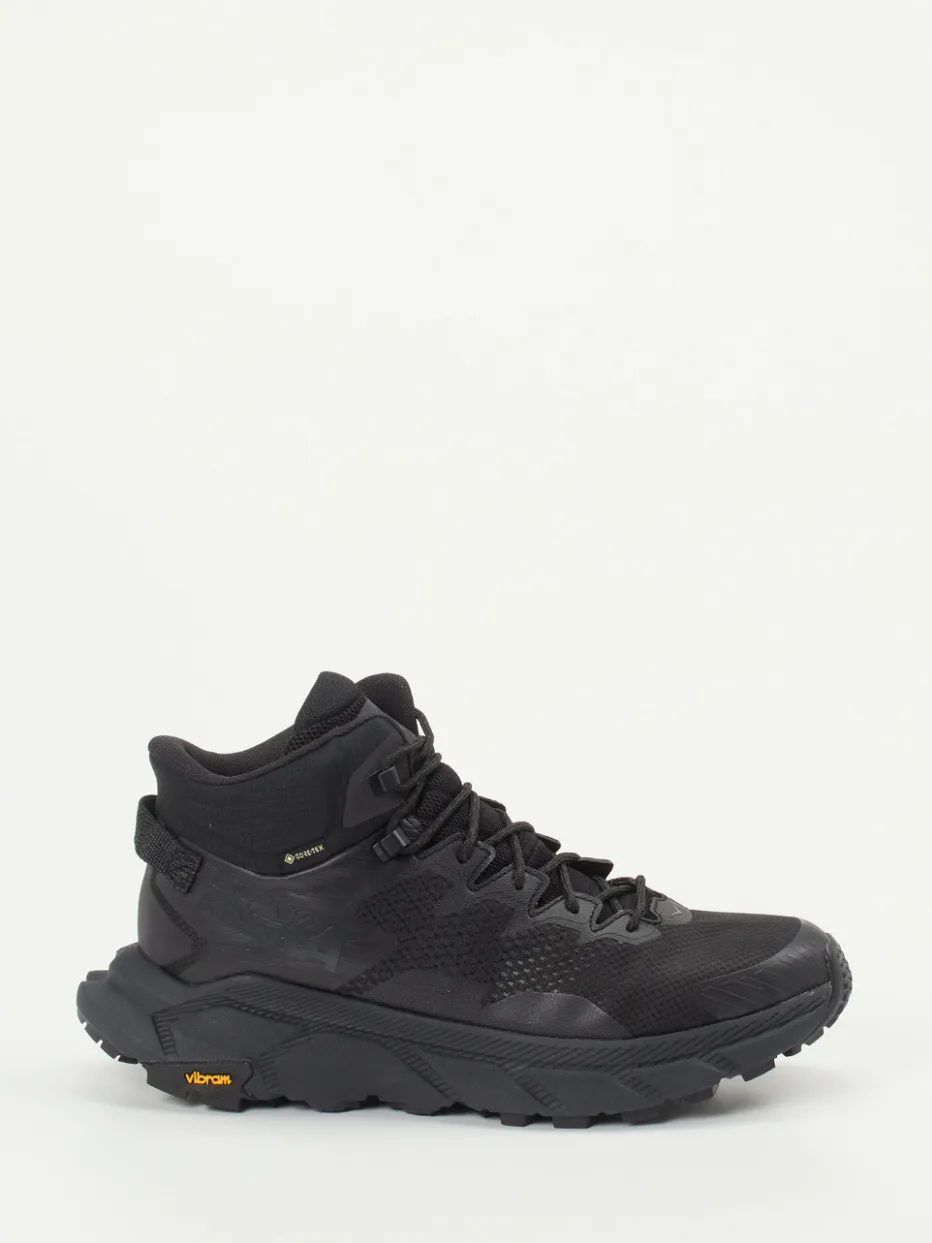 Mehr Grip auf jedem Terrain.Der knöchelhohe Wanderschuh von HOKA bringt technische Performance in den Outdoor-Alltag. Für anspruchsvolle Trails oder einen urbanen Gorpcore-Look: Das widerstandsfähige Obermaterial aus Mesh und Synthetik mit GORE-TEX®-Membran schützt zuverlässig vor Nässe und Wind. Ton-in-Ton gestaltet, überzeugt das Modell durch seine schwarze Farbgebung, die massive Silhouette und funktionale Details wie Ösenhaken und eine verstärkte Fersenkappe. Die Vibram-Gummisohle sorgt in Kombination mit der großzügigen Polsterung für hohen Komfort und sicheren Tritt. Einsetzbar von Freizeit bis Hochgebirge. Funktionalität und Design verschmelzen bei HOKA zum robusten Allrounder mit Stilanspruch.