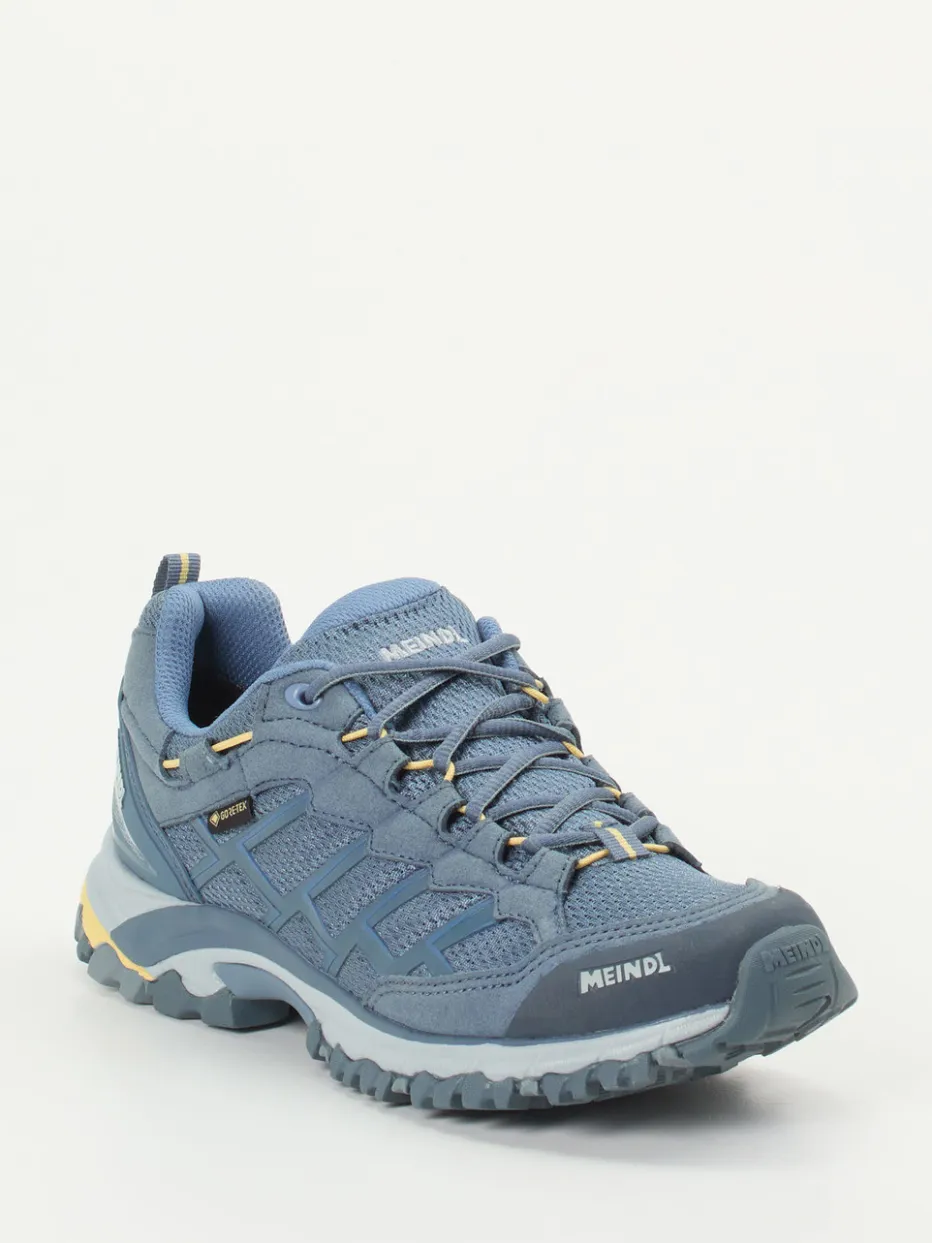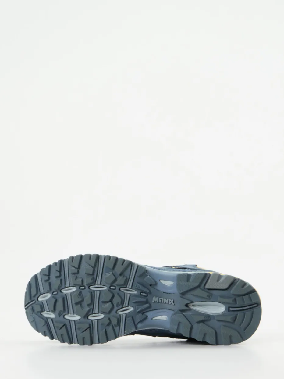 Wettertauglich auf jedem Trail.Meindl präsentiert funktionale Wanderschuhe in Low-Cut-Ausführung mit innovativem Wetterschutz. Ob spontane Tageswanderung oder ausgedehnter Spaziergang im Gelände – das wind- und wasserdichte Obermaterial aus Synthetik kombiniert mit matt strukturiertem Mesh sorgt für ein angenehmes Fußklima. Der Materialmix in Graublau, kontrastiert durch weizengelbe Akzente und dunkle Details, unterstreicht die sportlich-technische Silhouette. Features wie reflektierende Elemente, eine verstärkte Zehenkappe und die griffige Gummiprofilsohle erhöhen Schutz und Komfort. Stilistisch bewegt sich das Modell zwischen Gorpcore-Trend und praktischer Hiking-Funktion. Kombiniert mit Funktionskleidung entsteht ein urban-outdoorfähiger Look. Komfort und technische Performance treffen auf Meindl-Qualität für vielfältige Einsätze.