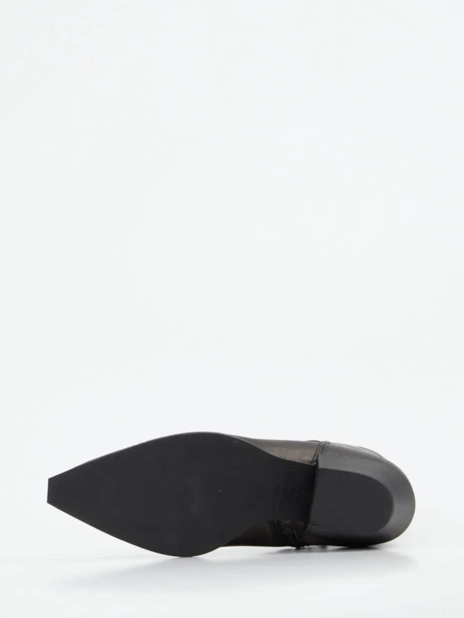 Minimalismus trifft Western-Charme.Die Marke Copenhagen interpretiert klassische Western-Stiefeletten auf moderne Weise. Dieses Damenmodell überzeugt mit echtem Glattleder in Dunkelbraun-Schwarz und einer fein genarbten Oberfläche im Used-Look-Finish. Eine spitz zulaufende Form, seitlicher Reißverschluss und eine dezente Zuglasche unterstreichen die klar konturierte Silhouette. Die matte Oberfläche harmoniert mit Ton-in-Ton-Nähten und betont den minimalistischen Anspruch. Ein trichterförmiger Absatz und die Gummisohle sorgen für Komfort im urbanen Alltag. Im Trend mit dem Dark Western-Stil der Saison lässt sich diese Stiefelette stilvoll zu Denim oder Leder kombinieren. Ein Modell, das hochwertigen Lederkomfort und modisches Understatement souverän vereint.